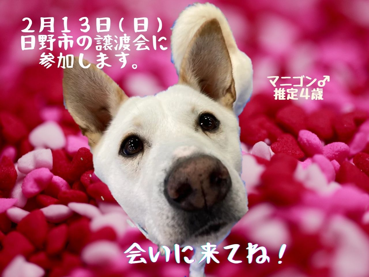 2月13日(日)、東京都日野市で開催される「保護犬・保護猫の譲渡会」に、ピースワンコ・ジャパンあきる野譲渡センターで家族を募集しているワンコが参加します。コロナ禍ではありますが、屋外を会場に、感染防止対策を徹底し、皆様のご来場をお待ちしています。