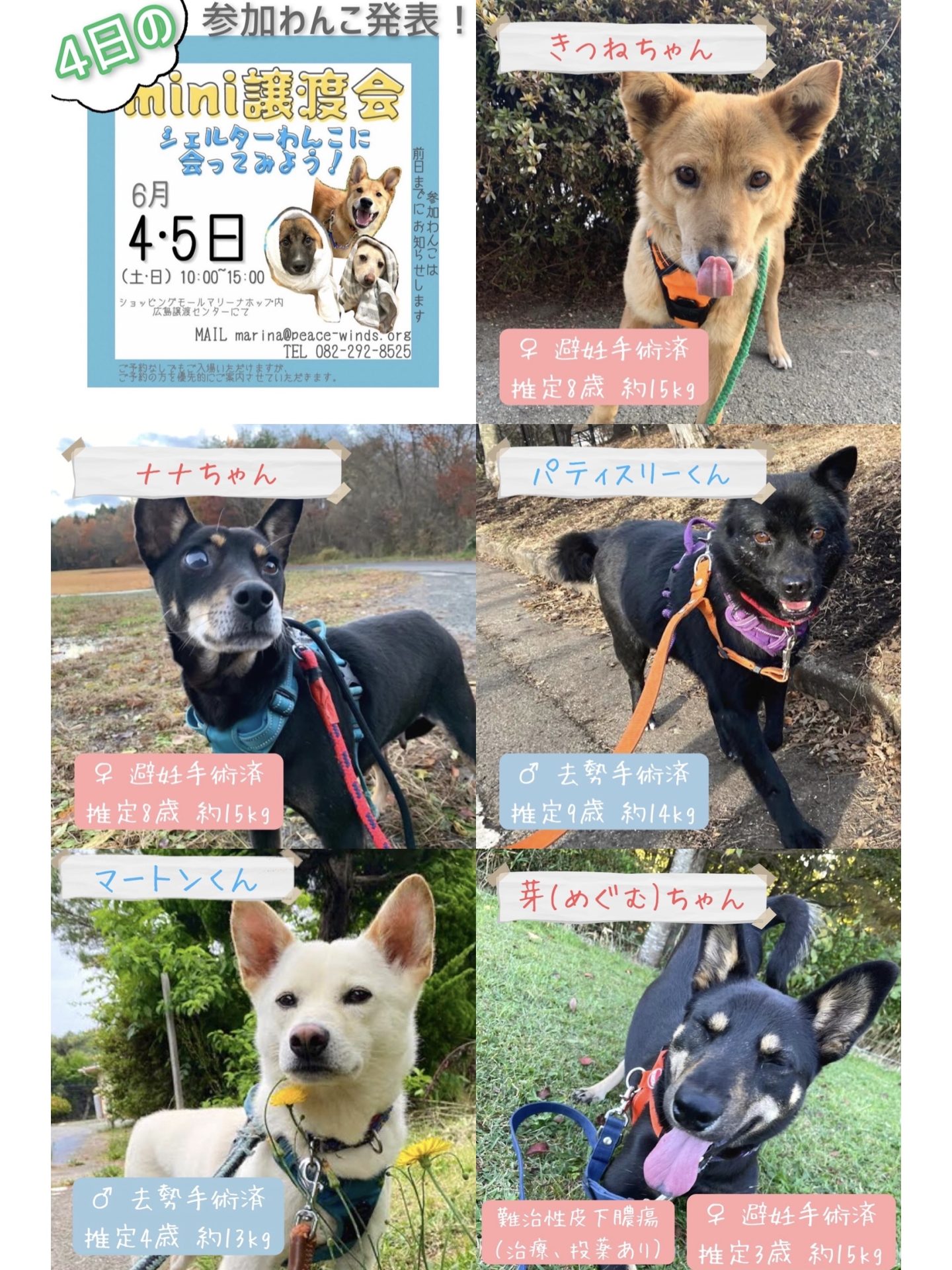 神石シェルター在籍のわんこ各日5頭を予定しています。