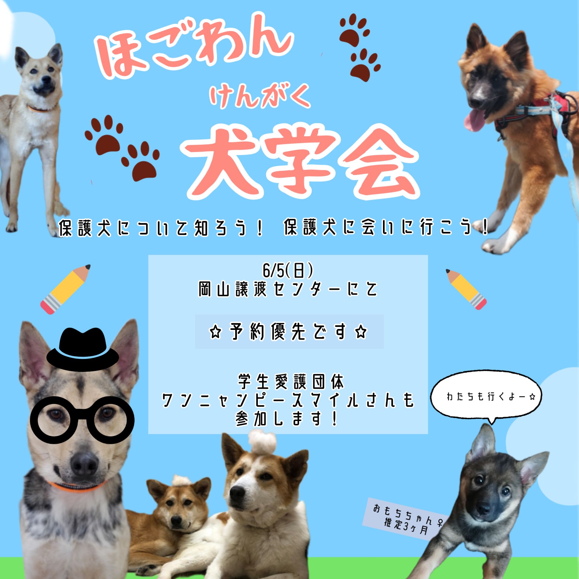 6/5(日)、岡山譲渡センターで【ほごわん🐾犬学会(けんがくかい)】を開催します!