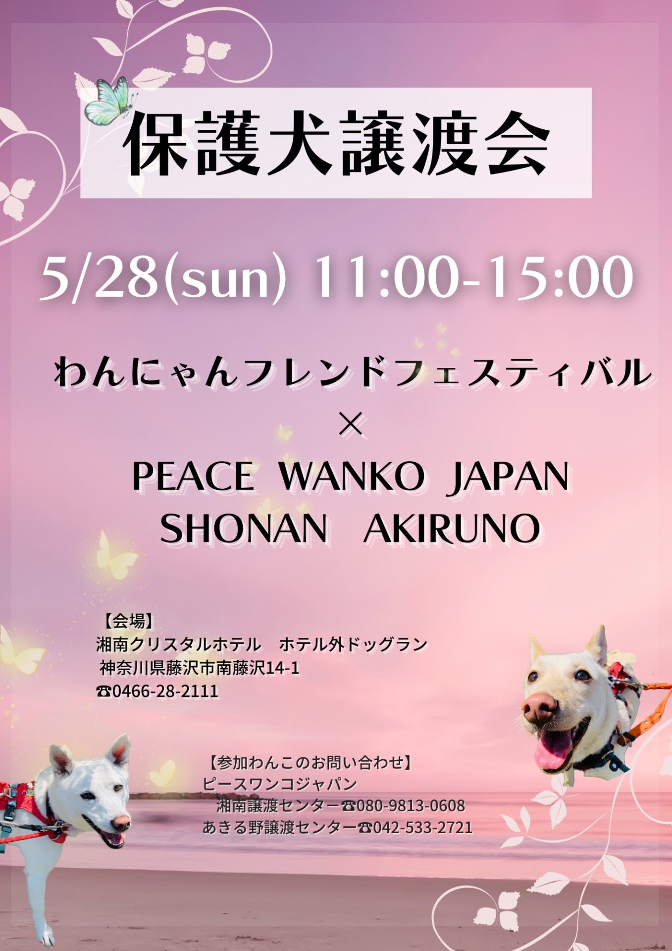 【ピースワンコの譲渡会】5/28(日)「わんにゃんフレンドフェスティバル」に参加(湘南) (神奈川)