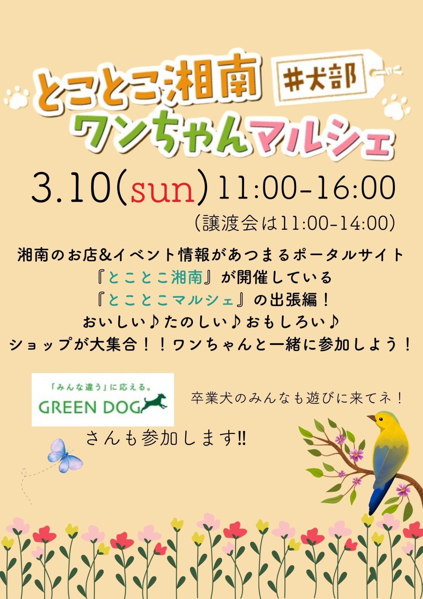 - 2024年3月10日 保護犬譲渡会 11:00~14:00 とことこマルシェ #犬部 11:00~16:00