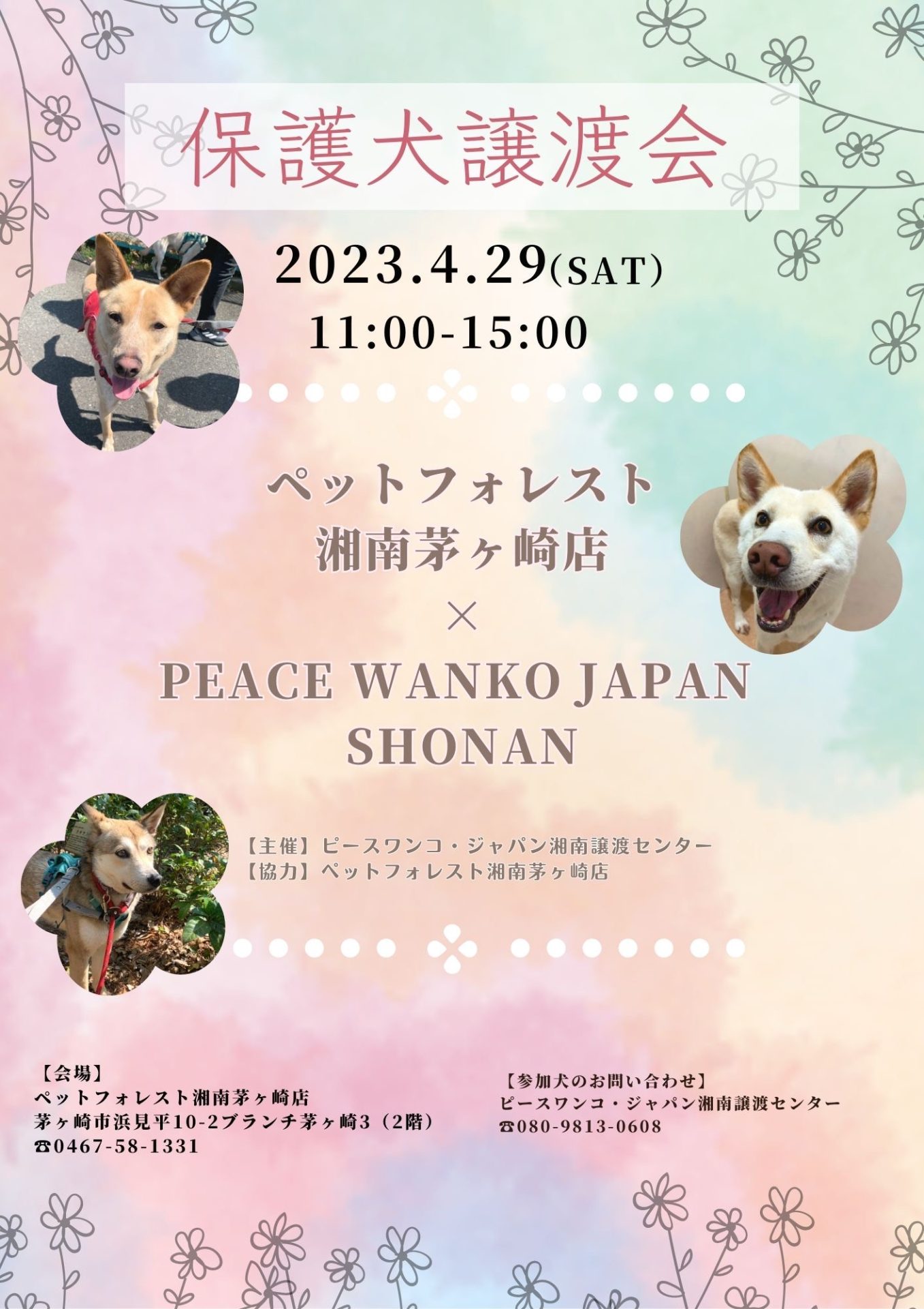 - 【協力】ペットフォレスト湘南茅ヶ崎店【主催】ピースワンコジャパン