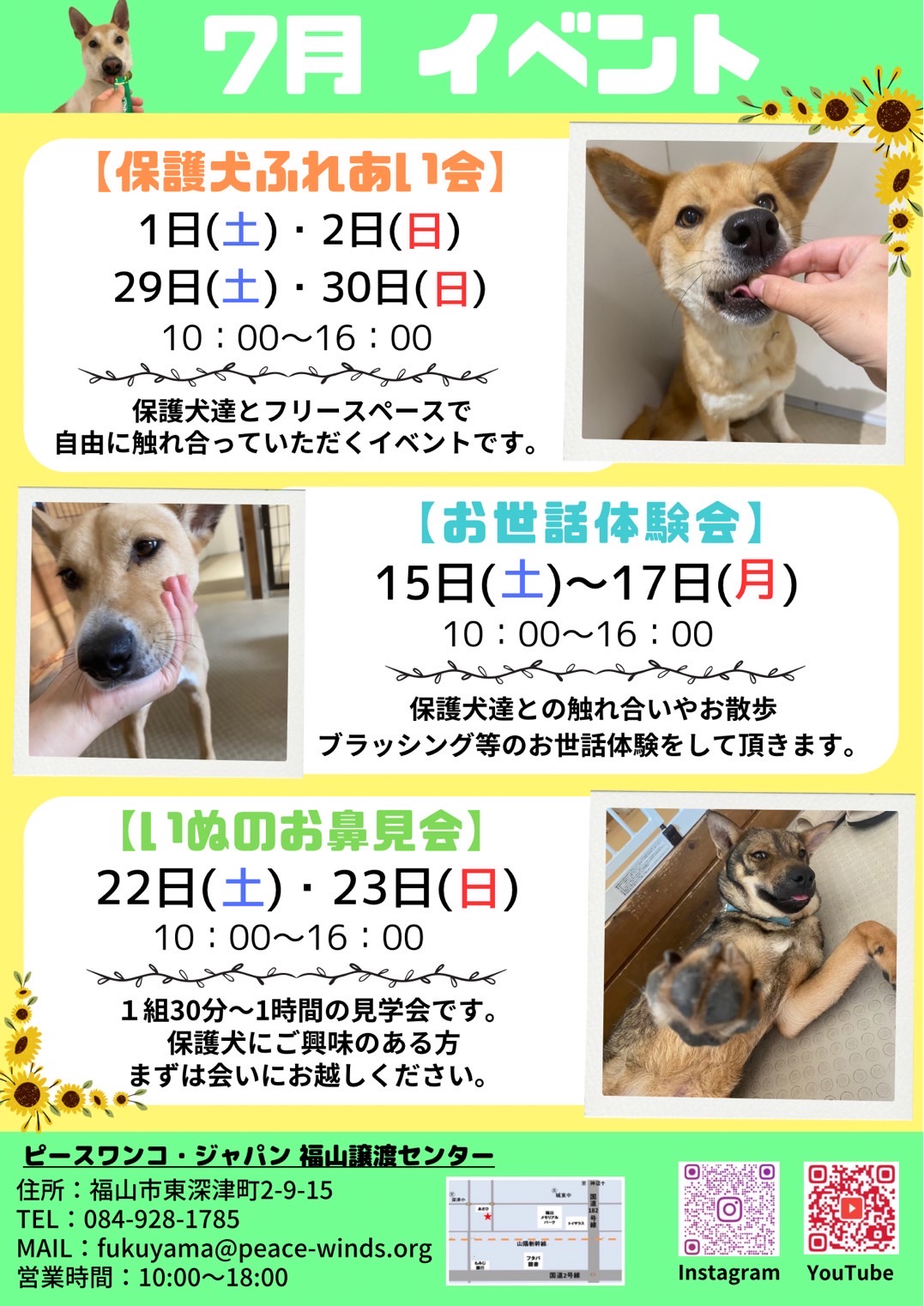 【ピースワンコのイベント】7月イベントのお知らせ(福山譲渡センター)