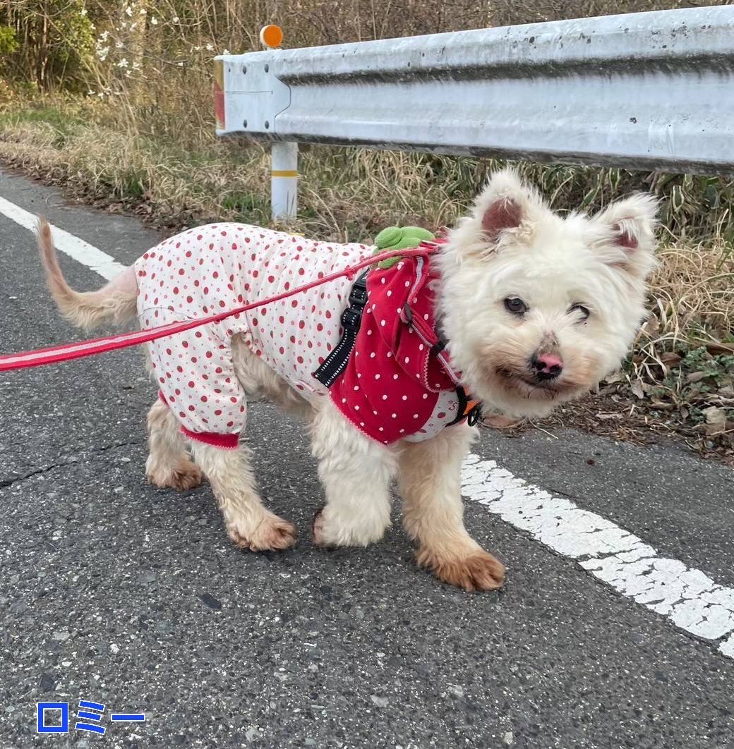 モフモフなおばあちゃんワンコです。散歩は楽しそうに歩きます。