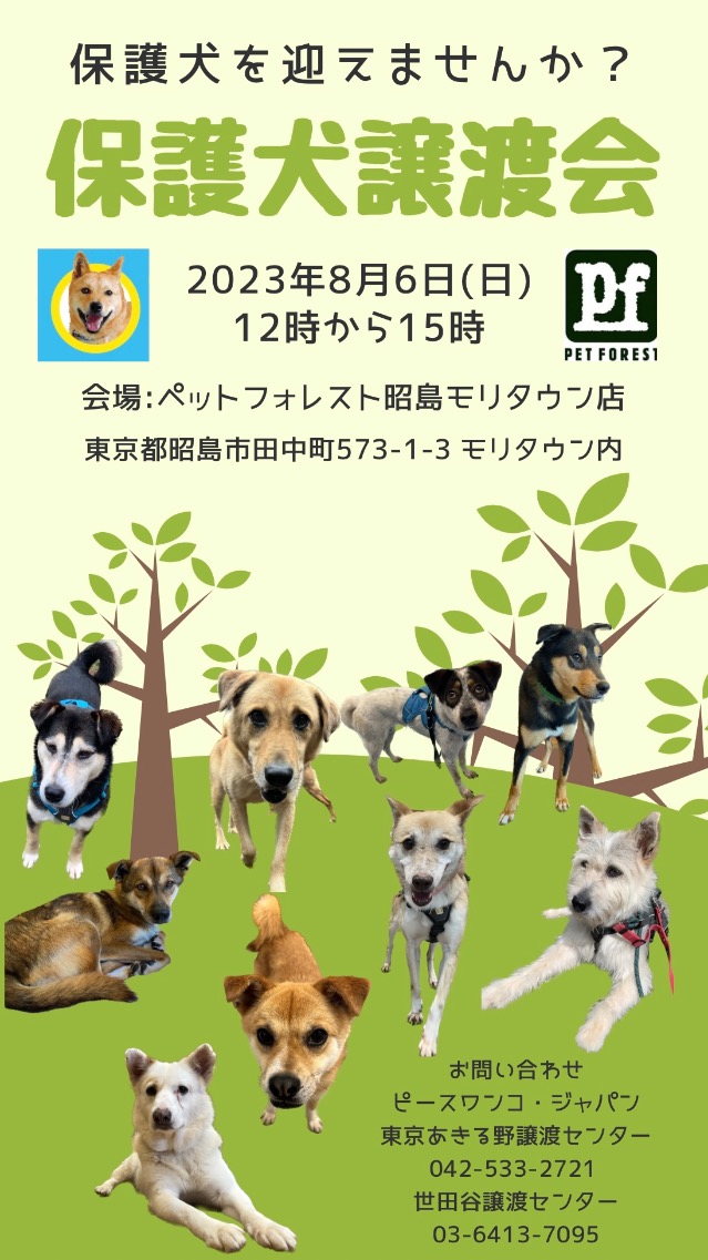 - <協力> ペットフォレスト昭島モリタウン店様 <主催> ピースワンコ・ジャパン