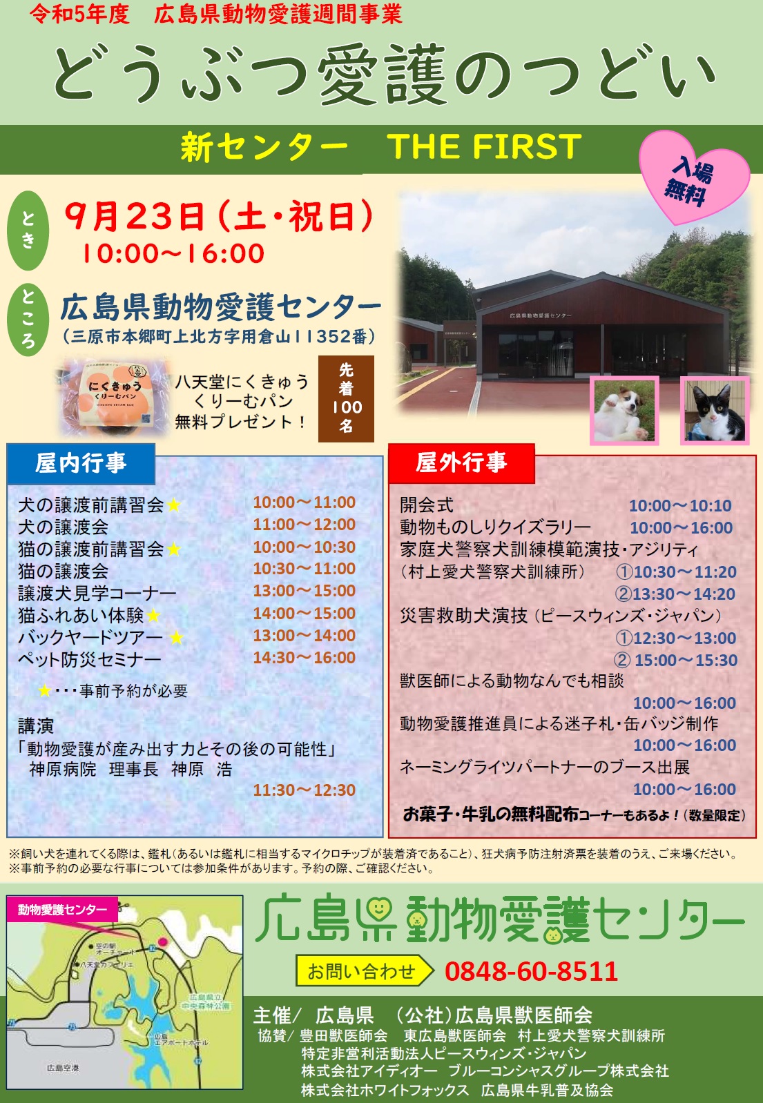 9月23日(土/祝)、リニューアルオープンされた広島県動物愛護センターにて開催される「どうぶつ愛護のつどい」に、ピースワンコ・ジャパンが参加いたします!