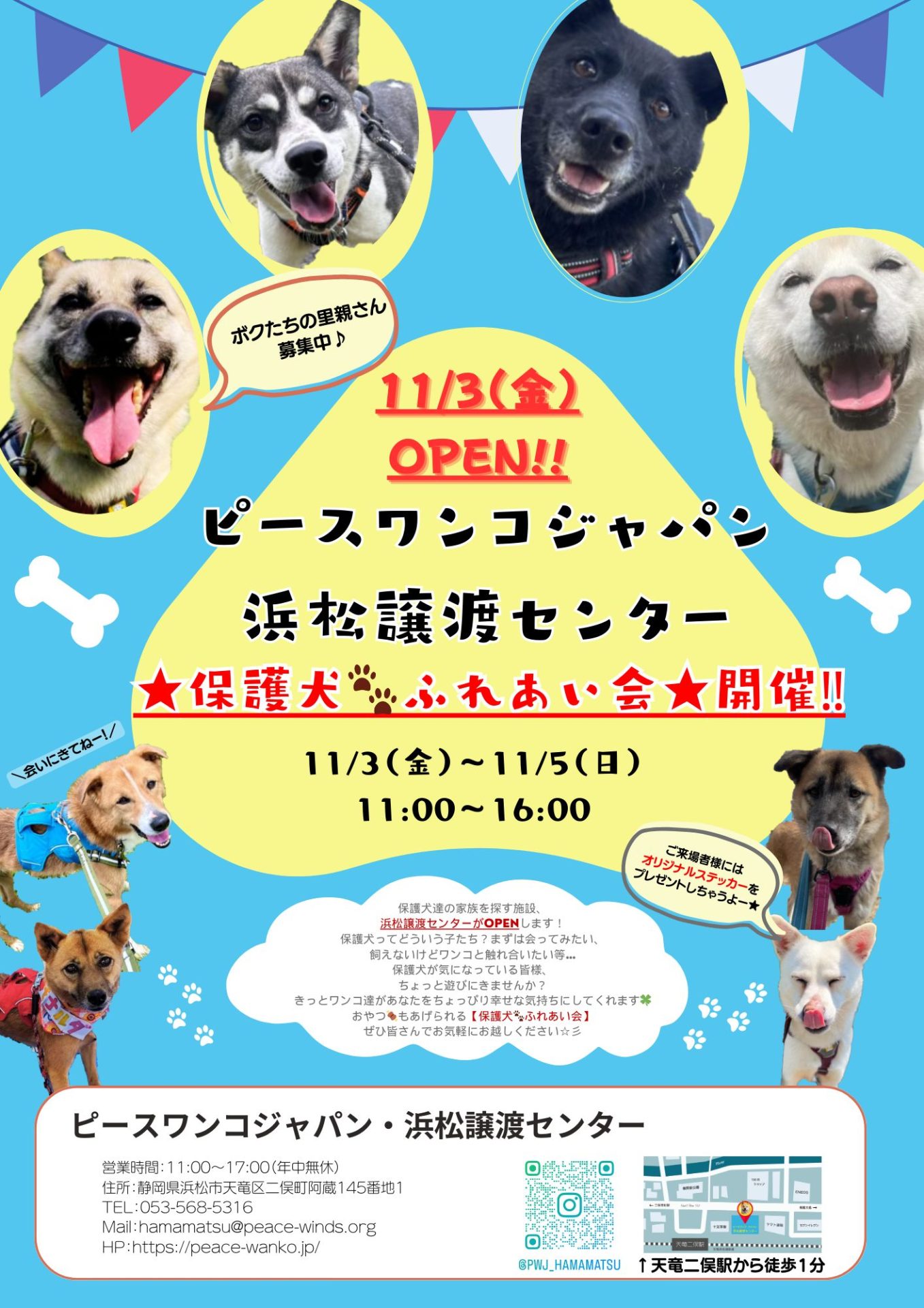 【ピースワンコのイベント】11/3~5「保護犬🐾ふれあい会」開催(浜松譲渡センター)
