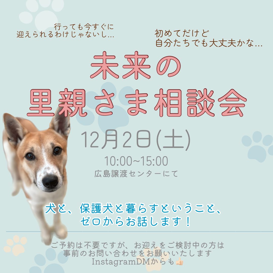 12月2日(土)、広島譲渡センターにて 未来の里親さま相談会 を開催します。