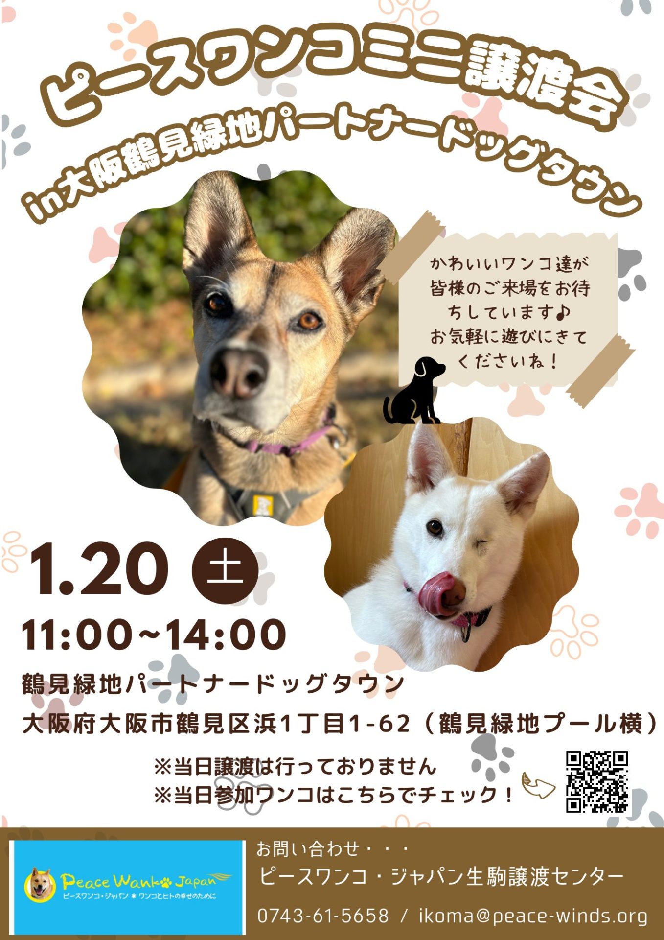 【ピースワンコの譲渡会】1/20(土)「ミニ譲渡会in大阪鶴見緑地パートナードッグタウン」開催(大阪/大阪市)