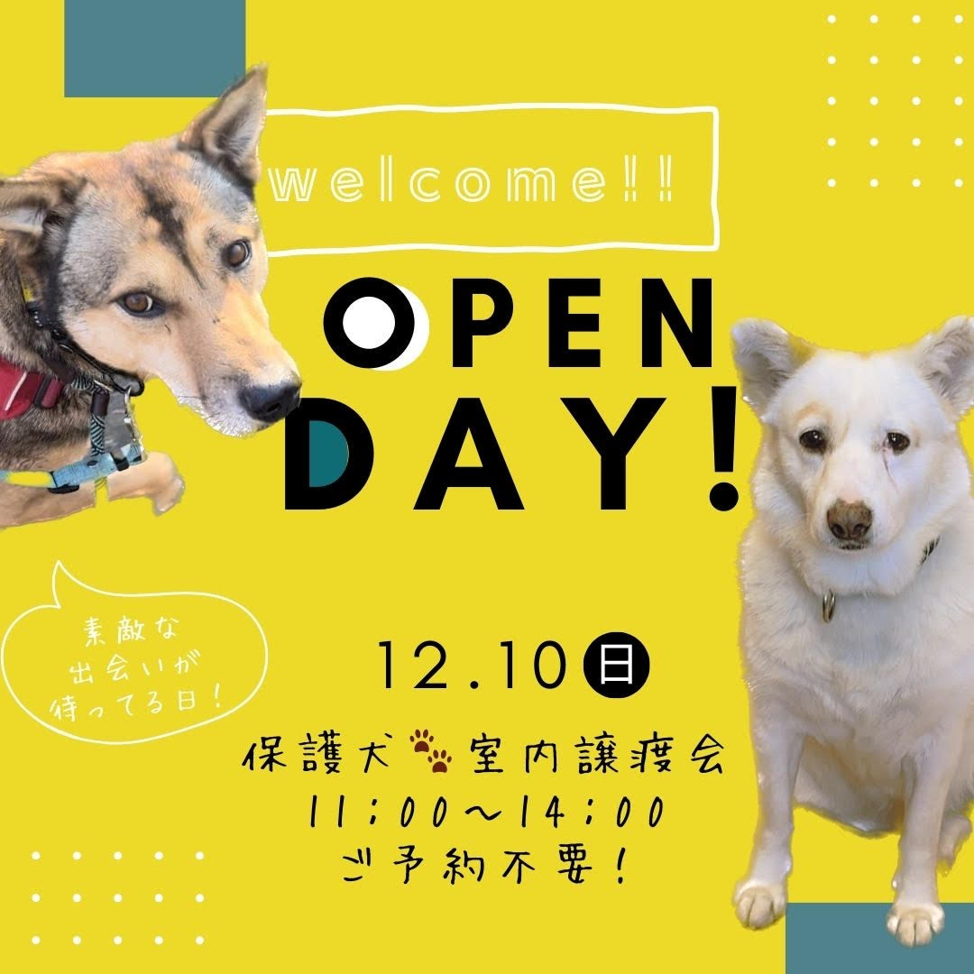 12月10日(日)、あきる野譲渡センターで家族を探しているワンコに会っていただきやすくするために、☆OPEN DAY☆素敵な出会いが待ってる日☆を開催します。