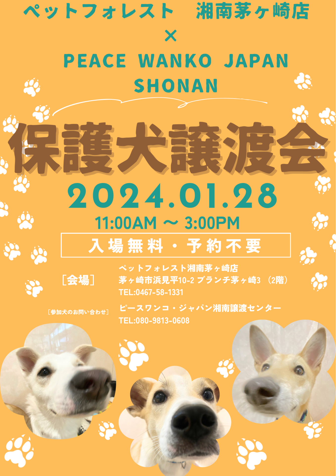 - 【協力】ペットフォレスト湘南茅ヶ崎店 【主催】ピースワンコジャパン