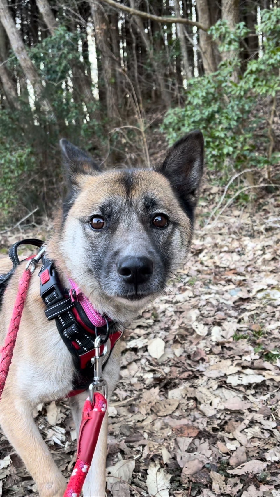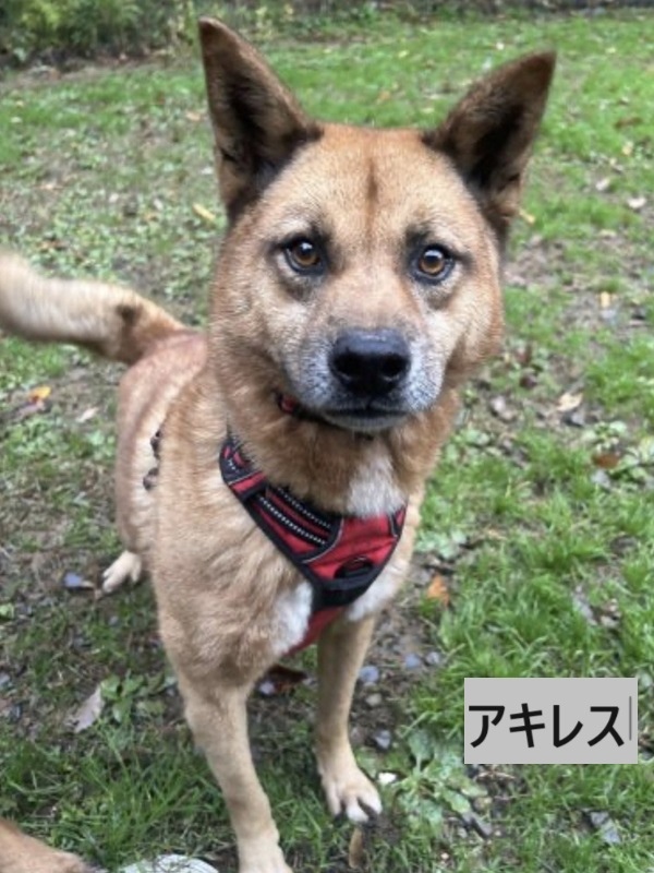 体型はがっちりしてますが困ったような顔がかわいい女の子です!お散歩はまだこわくて引っ張ってしまうこともありますが、慣れたところではしっぽをあげて上手に歩いてくれます。おやつもしゃがんであげたら食べてくれます! - ご来場の皆様へ