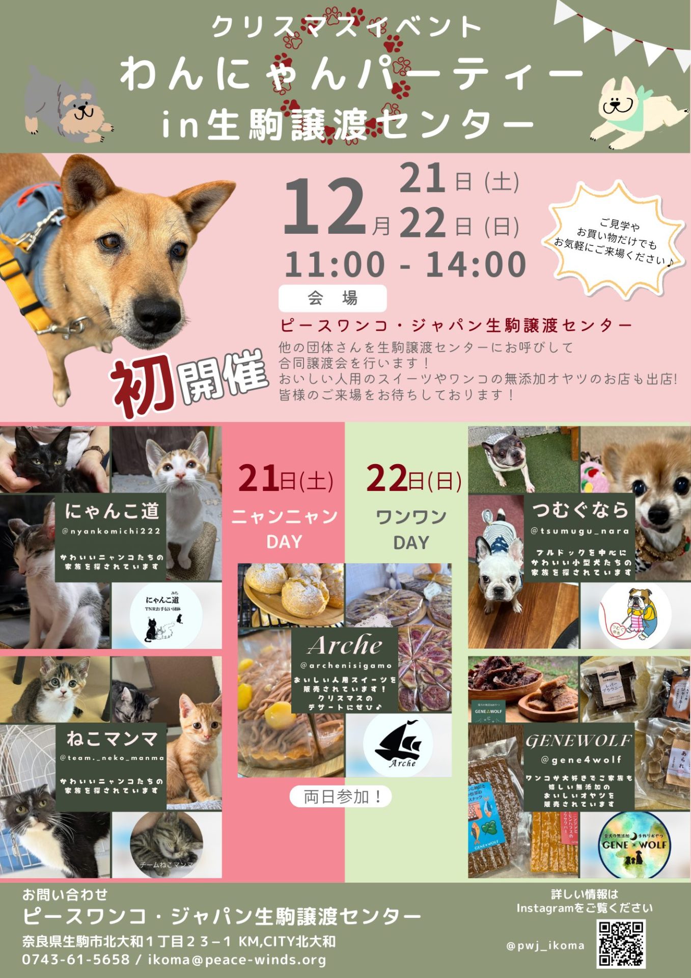 【ピースワンコのイベント】12/21(土)、22(日)わんにゃんパーティー(生駒譲渡センター)