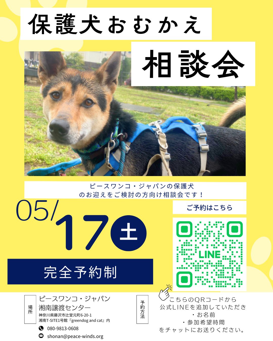 【ピースワンコのイベント】5/17(土)保護犬おむかえ相談会※予約制(湘南譲渡センター)