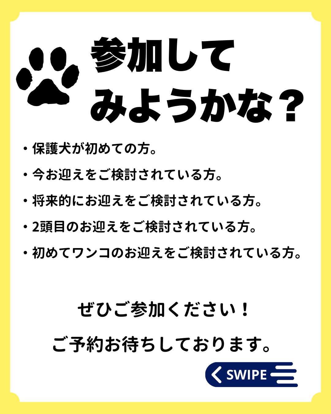 現在、湘南譲渡センターに在籍している、保護犬をお迎えしたい方の相談会です。ご予約お待ちしております!