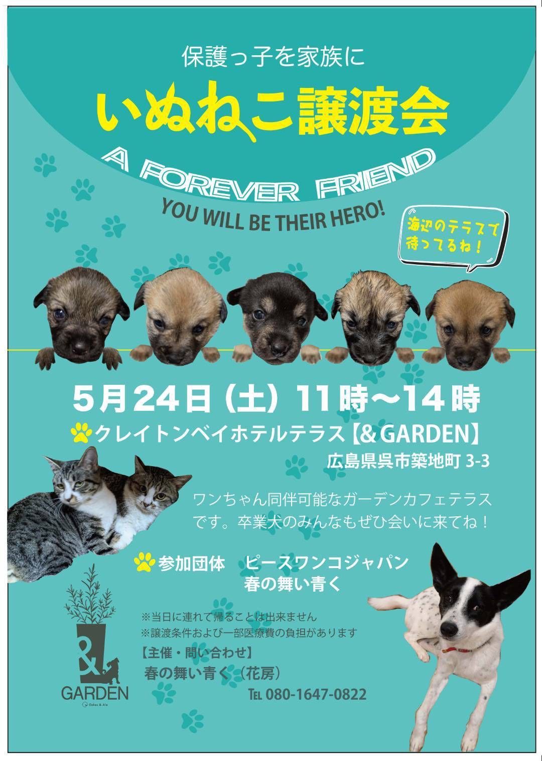 クレイトンベイホテルのテラスで開催される「いぬねこ譲渡会」に、ピースワンコの保護犬たちも参加せていただきます。