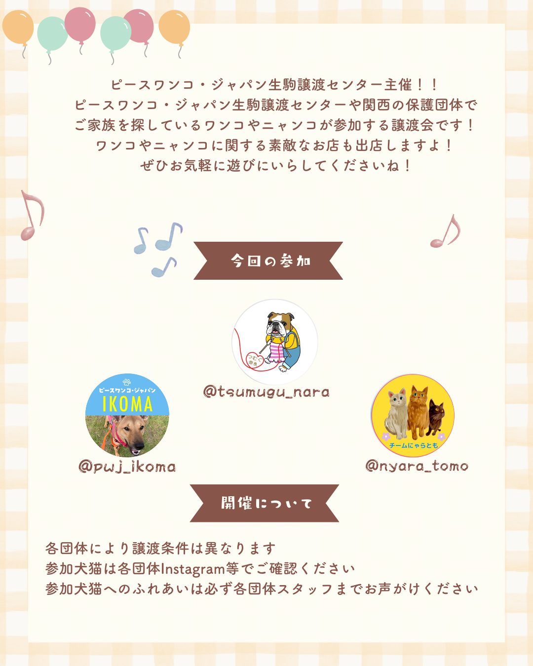 生駒譲渡センターでご家族を探しているワンコたちが参加する予定です♪