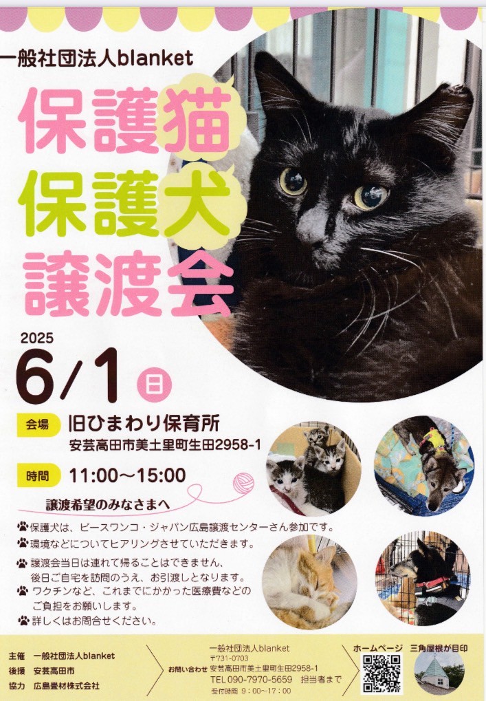 安芸高田市で行われるblanket様 主催の譲渡会に、ピースワンコも参加させていただきます!