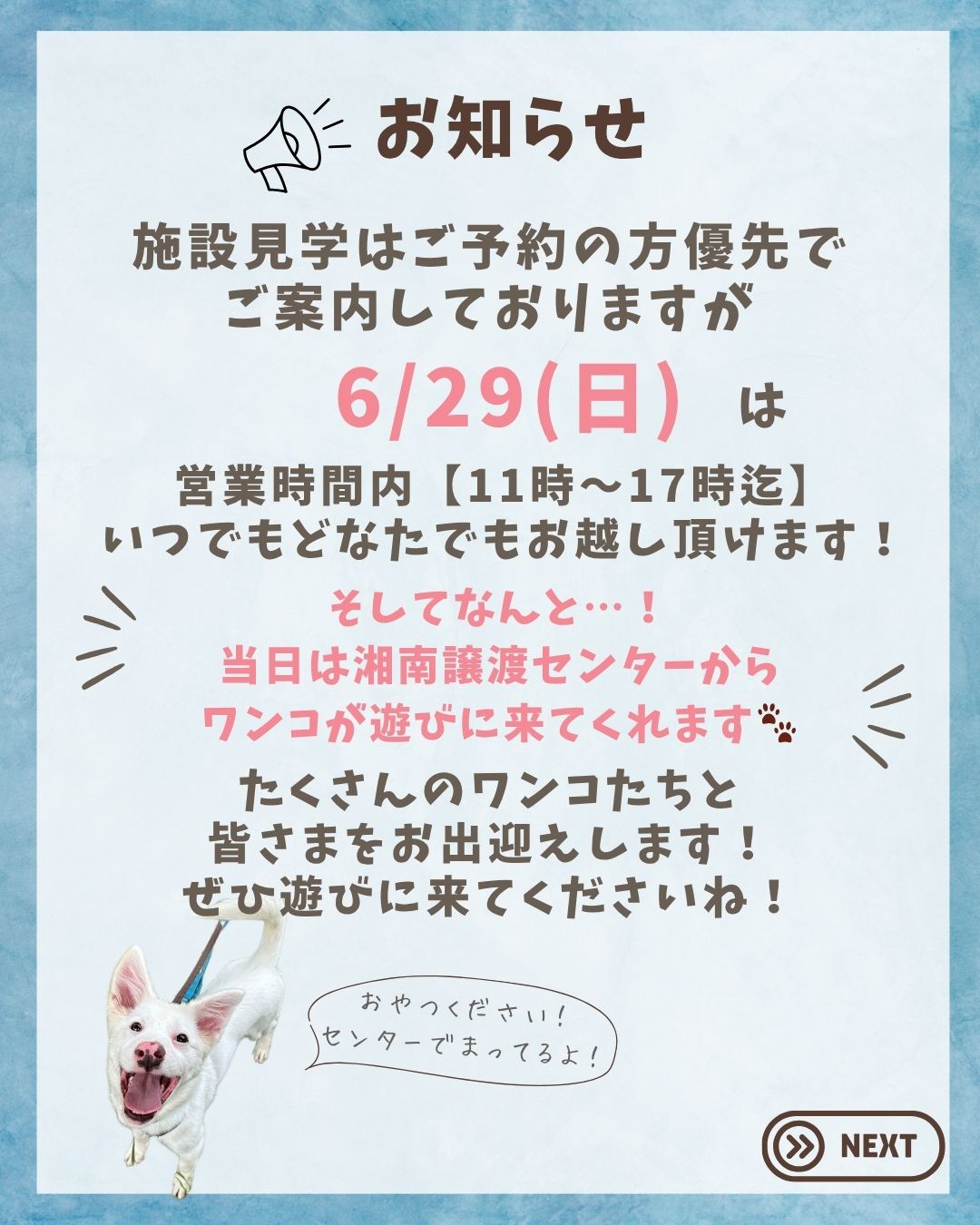 湘南譲渡センターは遠くてなかなか足を運べない方、湘南譲渡センターにいるワンコ達にも会ってみたい方