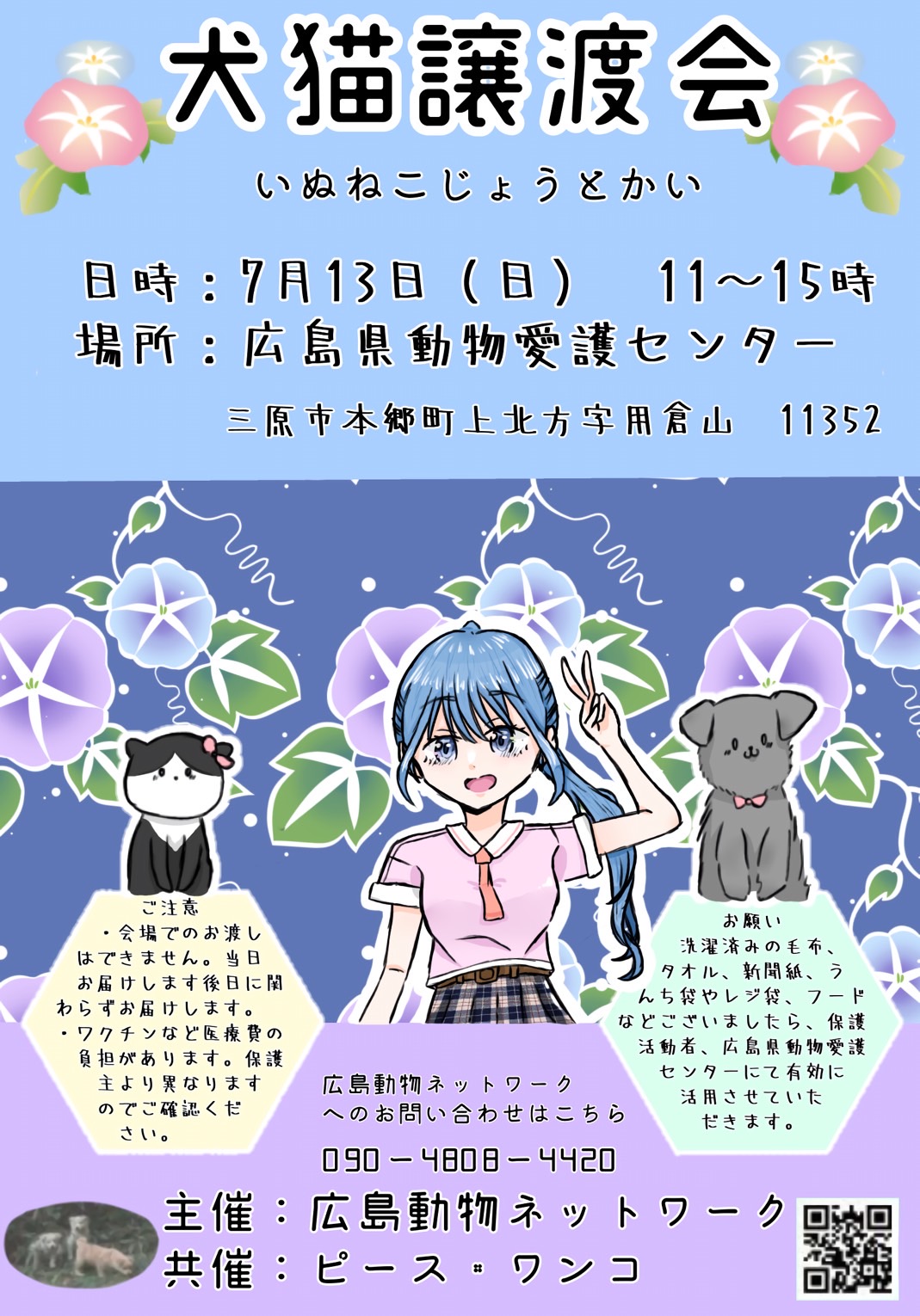 2025年7月13日(日)広島県三原市の「広島県動物愛護センター」様にて開催される