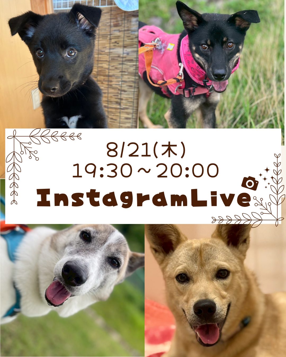 2025年8月21日(木)、生駒譲渡センターにて19:30~20:00までインスタライブを開催いたします。