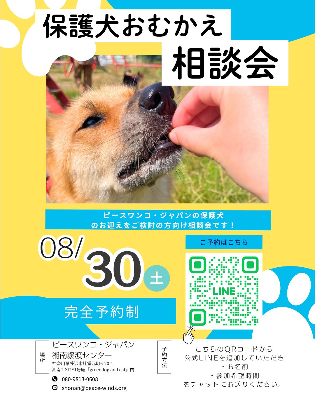 【ピースワンコのイベント】8/30(土)保護犬おむかえ相談会※予約制(湘南譲渡センター)