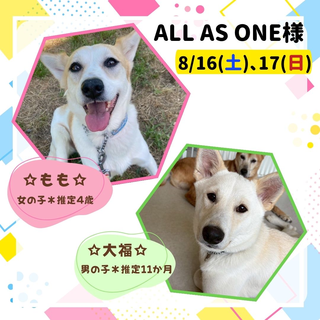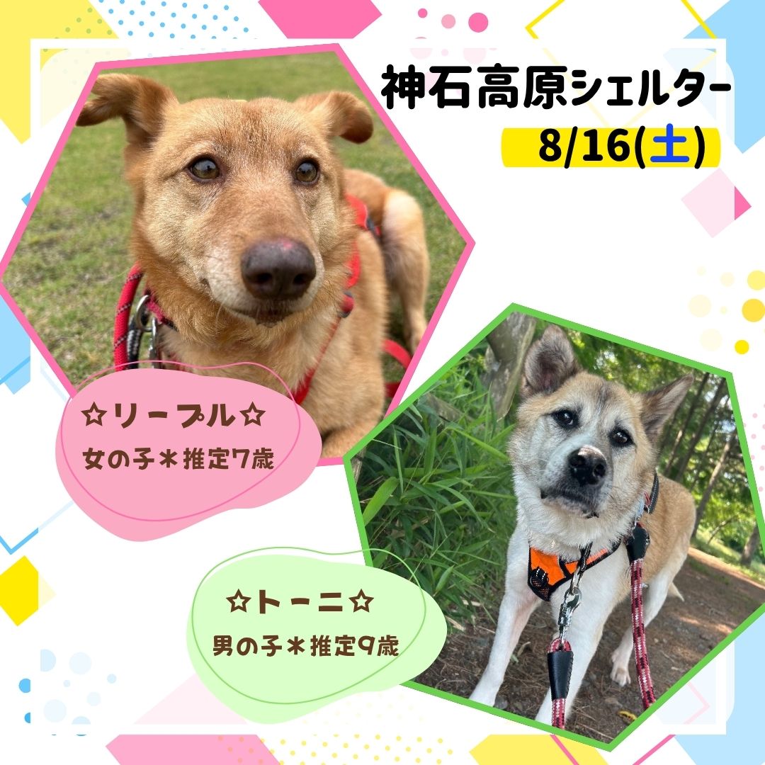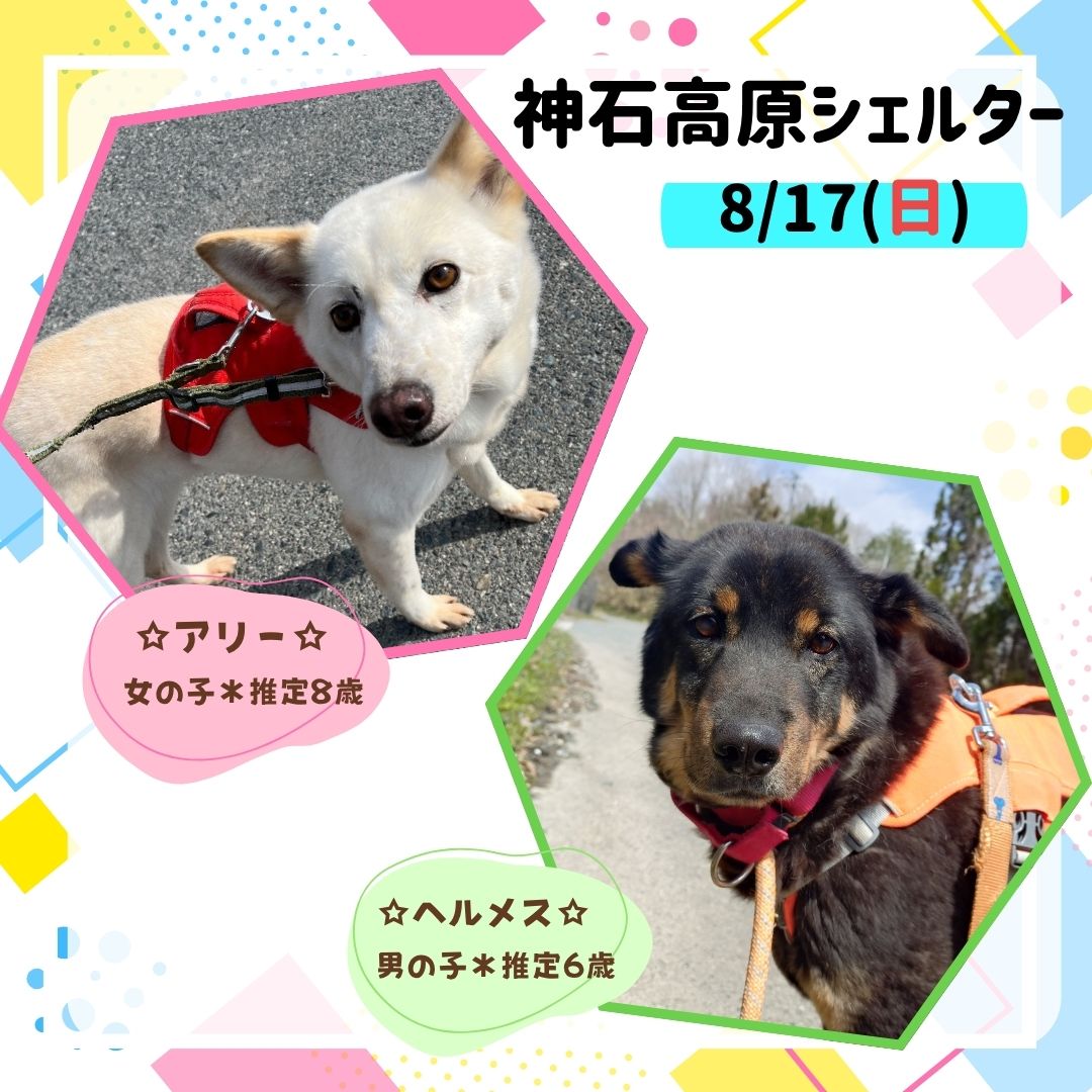 8/16(土)、8/17(日)に岡山譲渡センターにて 「 ALL AS ONE 様」、「くらしきアニマルレスキュー様」をお招きして【合同譲渡会】を開催します! 神石高原シェルターからも参加致します!