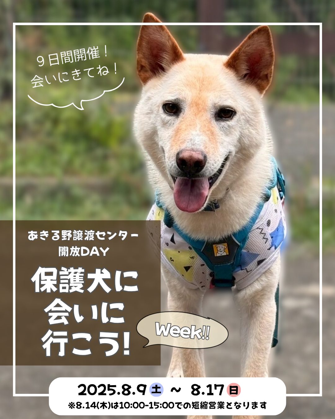 【ピースワンコのイベント】8/9(土)~8/17(日)「保護犬に会いに行こう!」開催(あきる野譲渡センター)