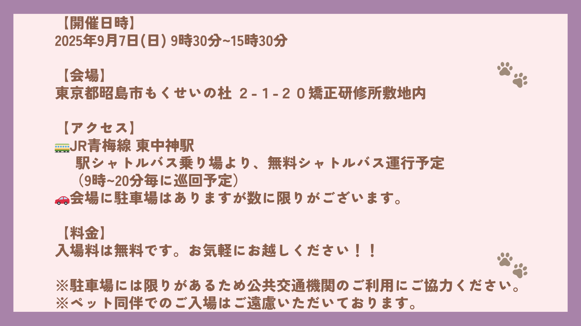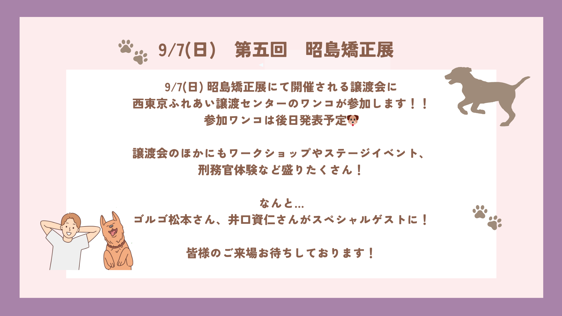9/7(日) 『昭島矯正展』にて開催される譲渡会に、関東4つの譲渡センターのわんこが大集合して参加します🐶