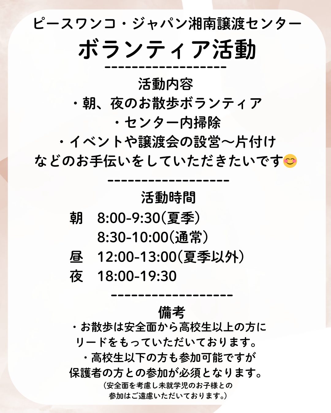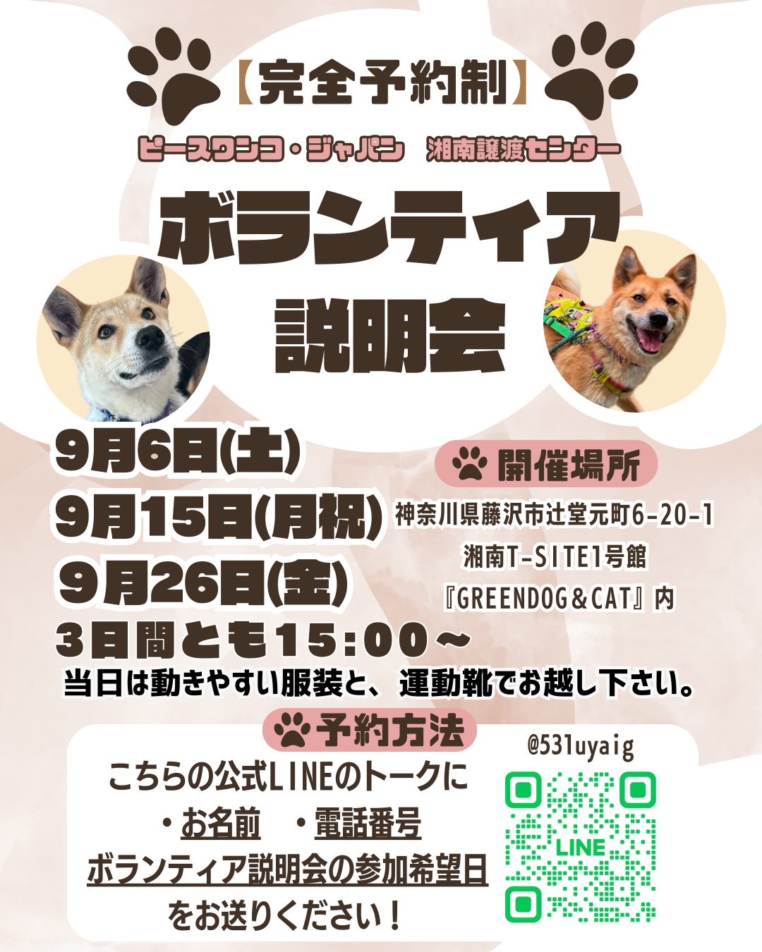 【ピースワンコのイベント】9/26(金)ボランティア説明会※予約制(湘南譲渡センター)