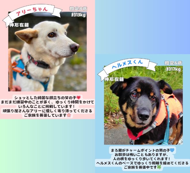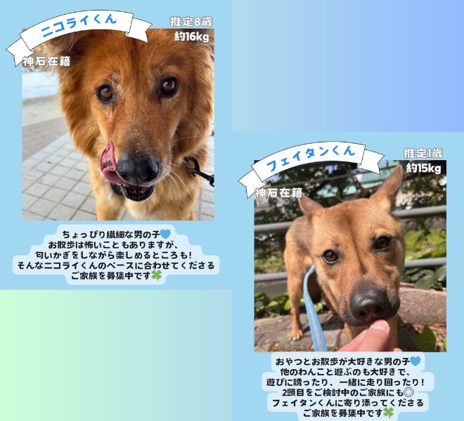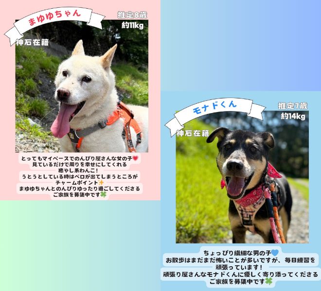この日はピースワンコ神石高原シェルターからも保護犬が参加します。