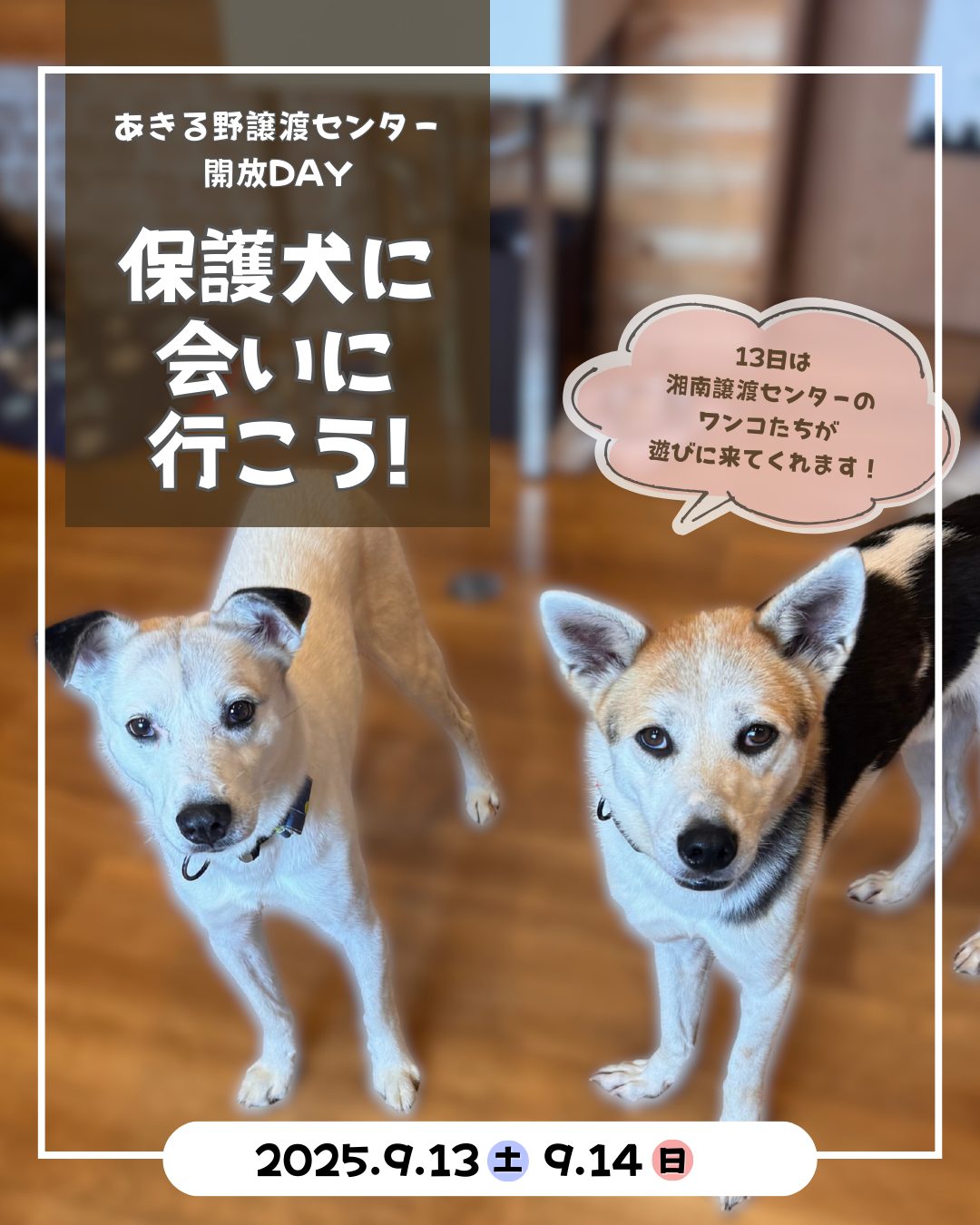 9/13(土)は、湘南譲渡センターのワンコが遊びに来てくれます!