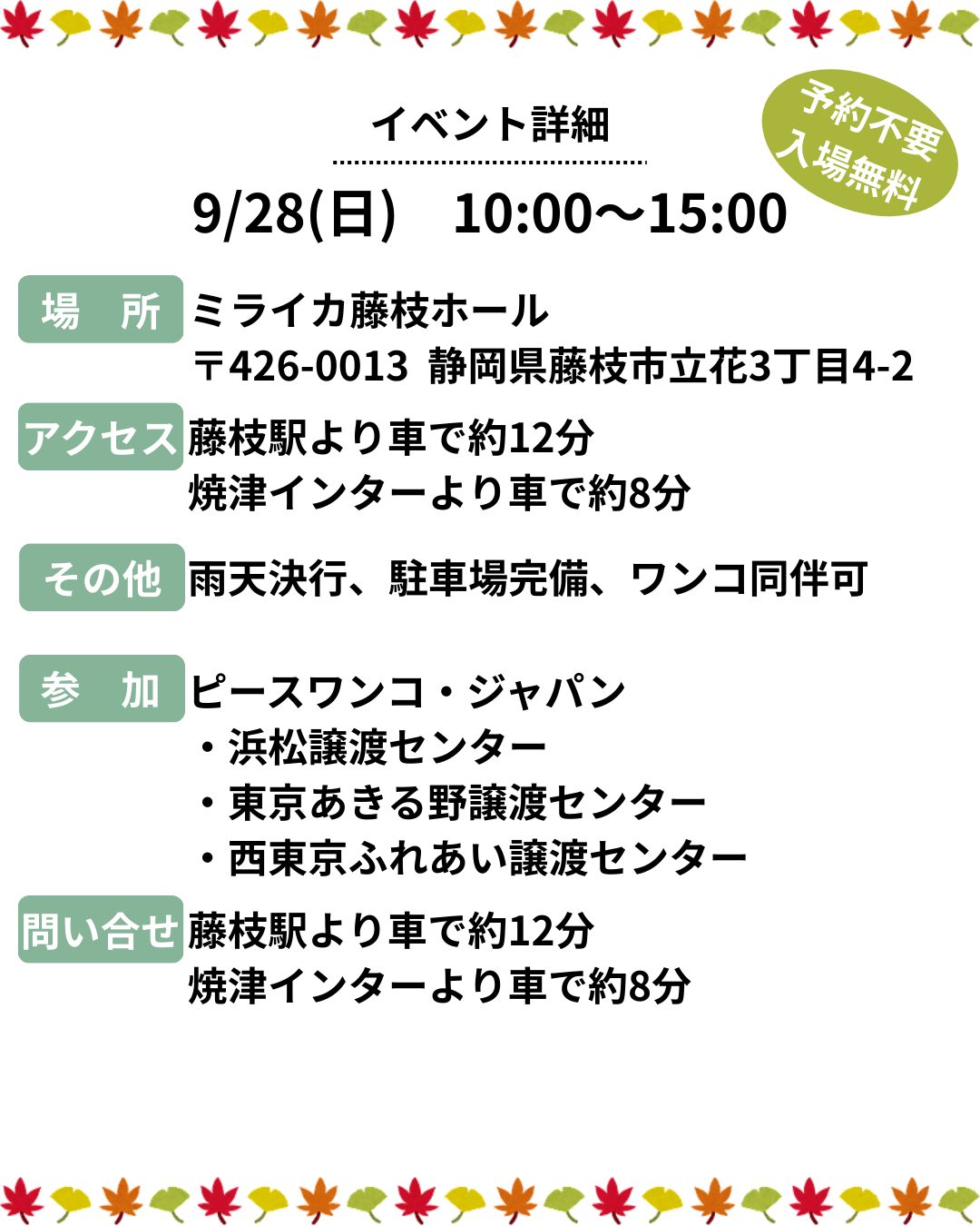 【ピースワンコの譲渡会】9/28(日)「3店舗合同☆保護犬譲渡会」を開催(静岡/藤枝市)