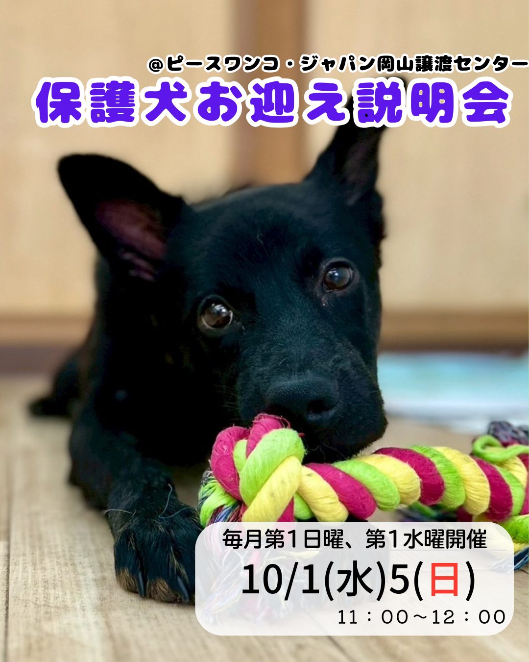 【ピースワンコのイベント】10/5(日)「保護犬お迎え説明会」(岡山譲渡センター)