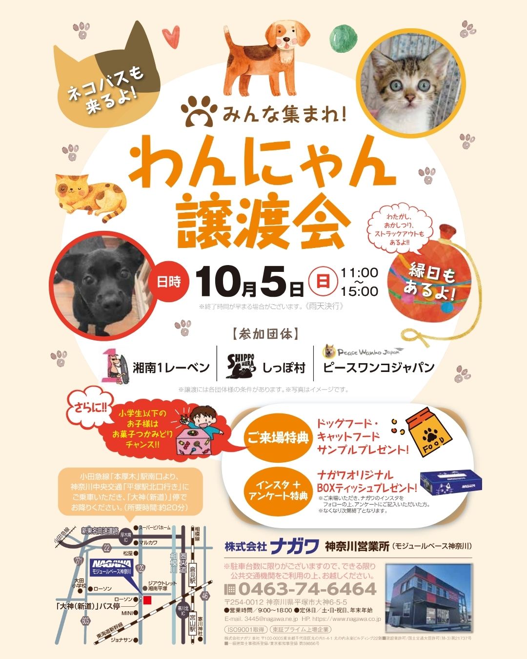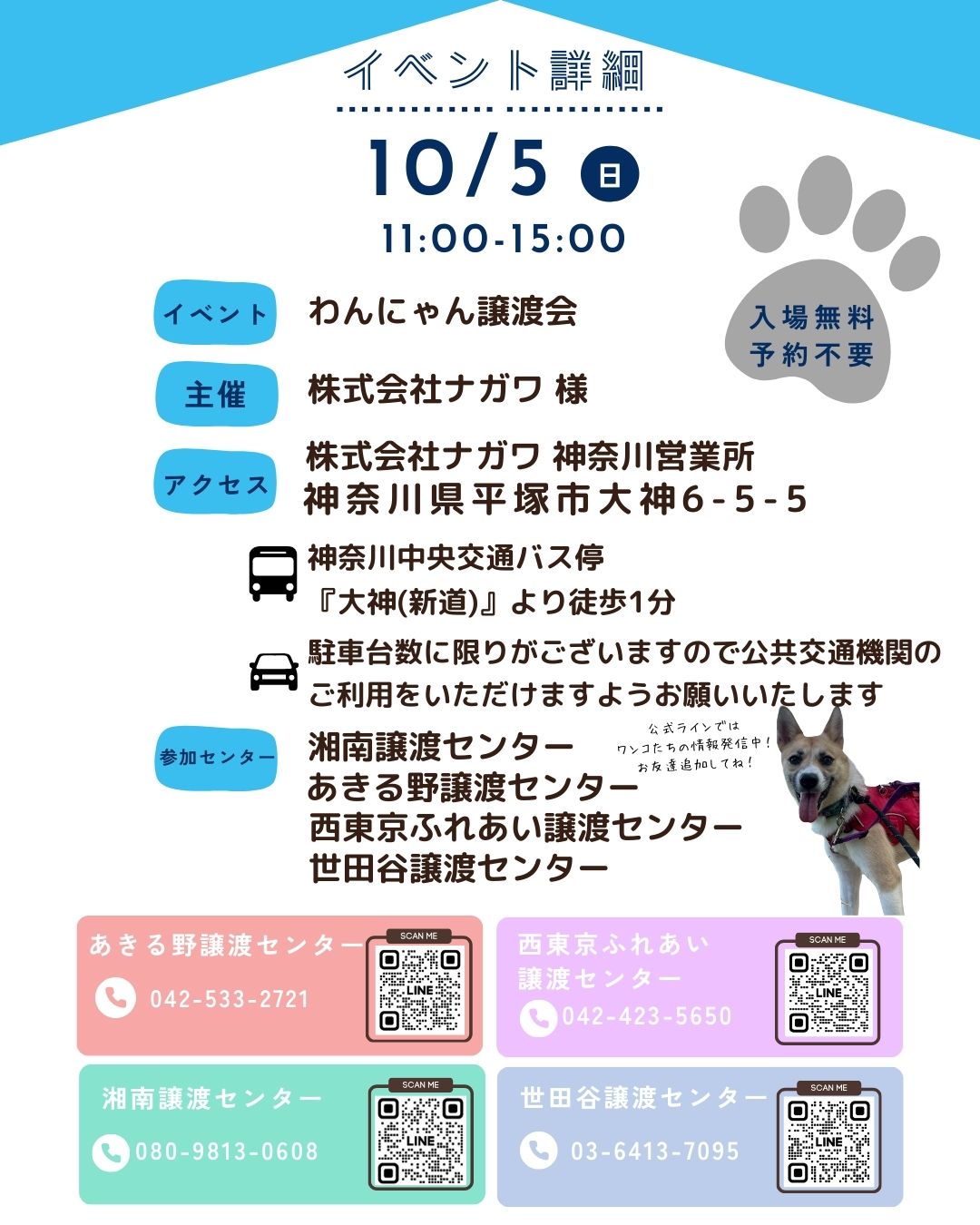 株式会社ナガワ神奈川県営業所様にて開催されます『わんにゃん譲渡会』へピースワンコも参加させていただくことになりました🐕🐾