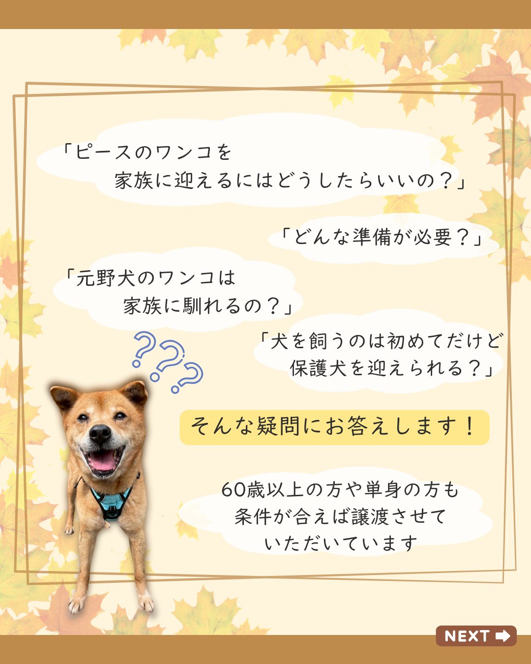 ピースワンコでは、60歳以上の方、単身の方にも条件が合えば譲渡させていただいています