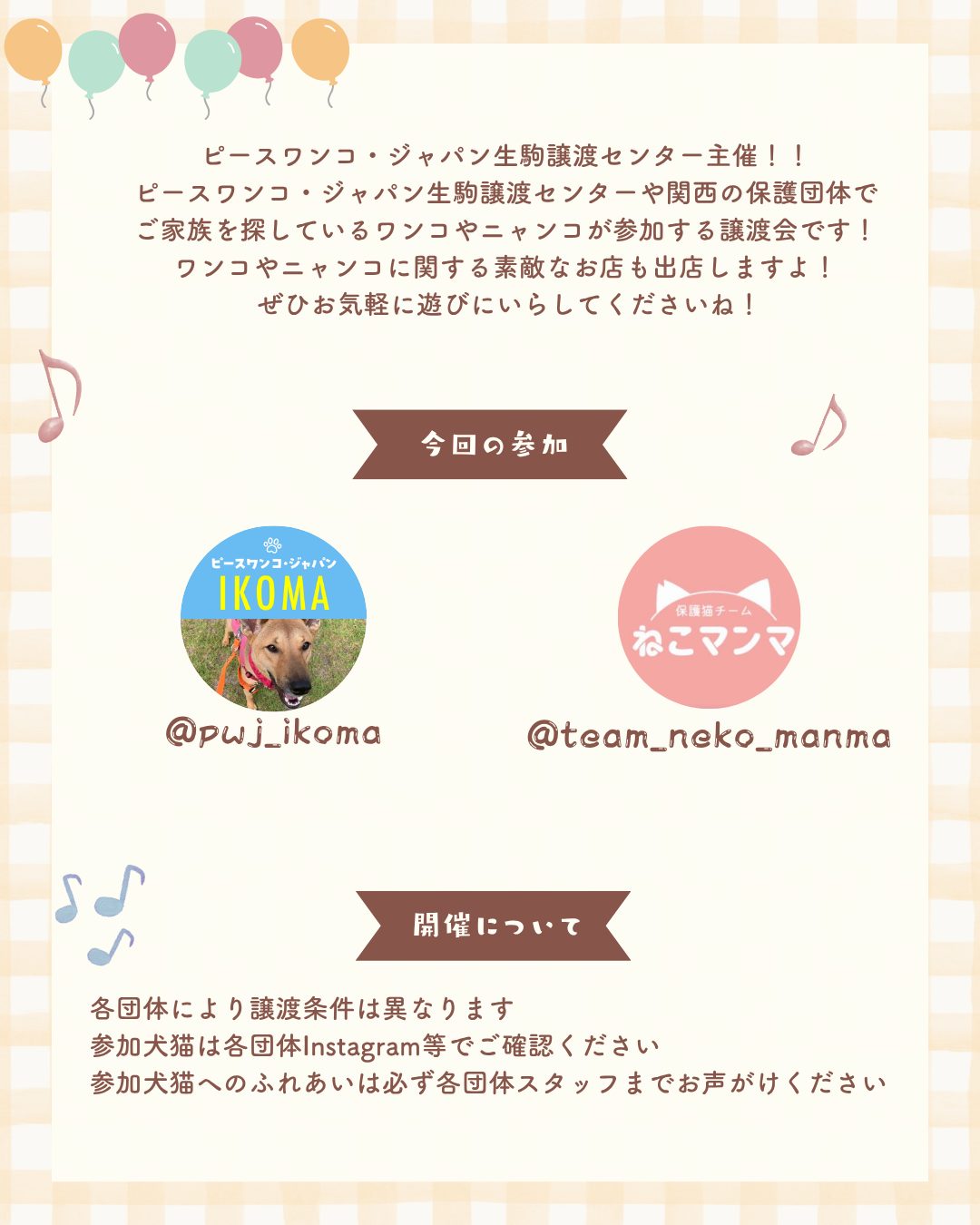 生駒譲渡センターでご家族を探しているワンコたちが参加する予定です♪
