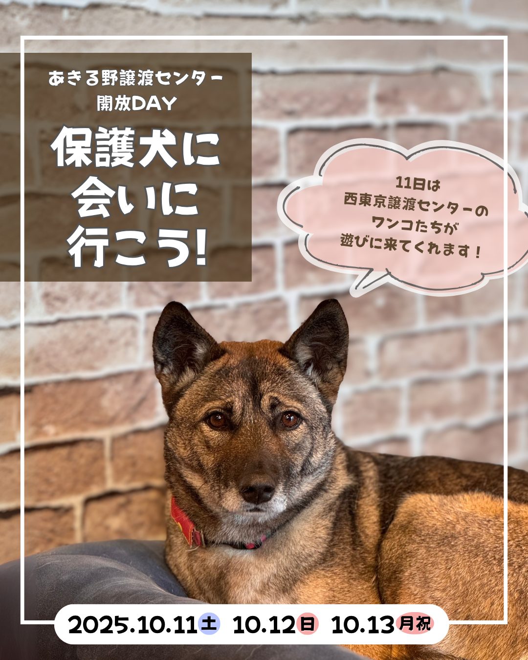 10/11(土)は、西東京ふれあい譲渡センターのワンコが遊びに来てくれます!