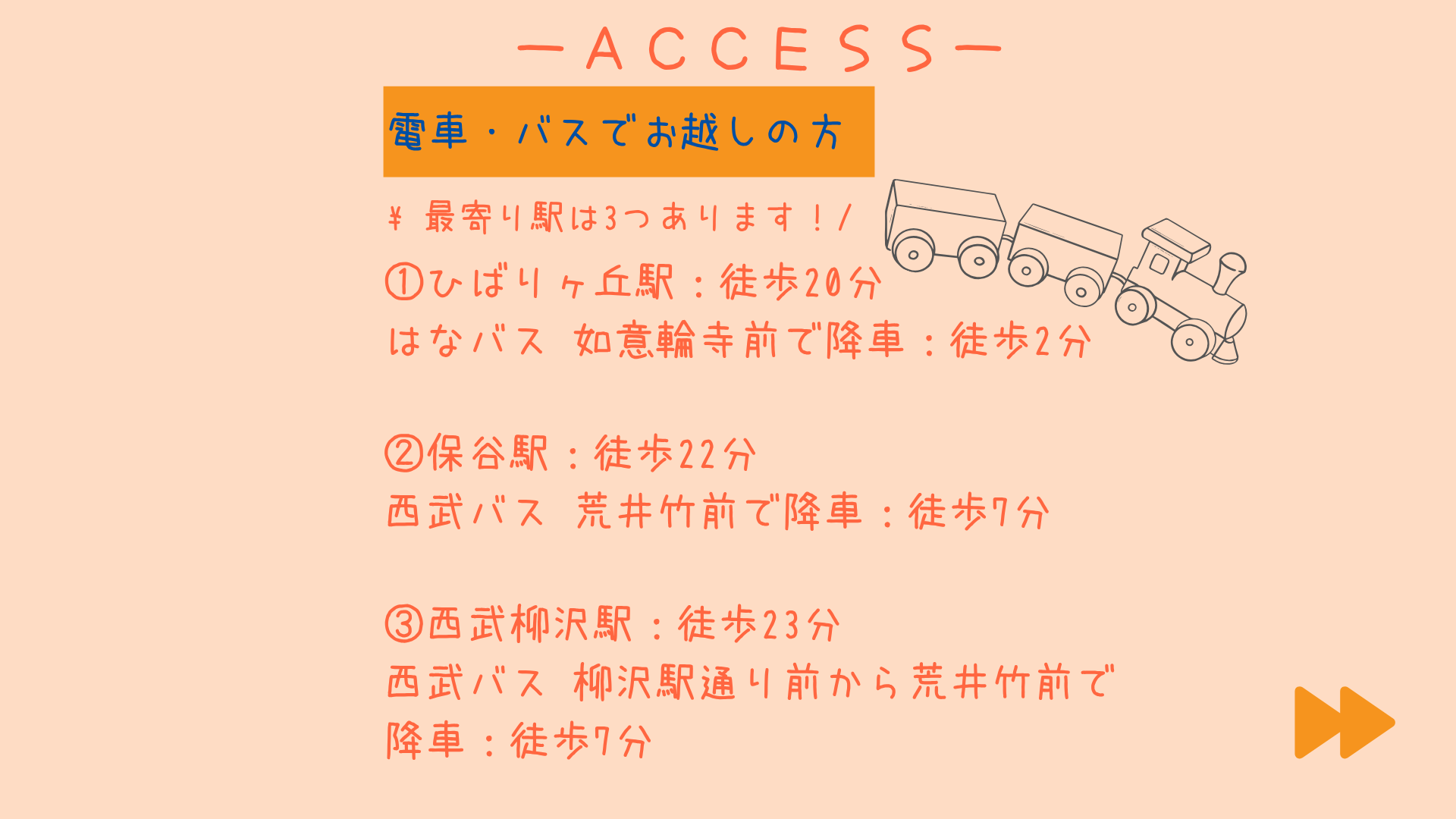 交通アクセス:西武池袋線「ひばりが丘駅」より徒歩20分、西武池袋線「保谷駅」より徒歩22分、西武新宿線「西武柳沢駅」より徒歩23分