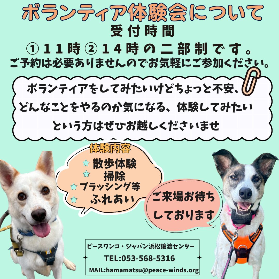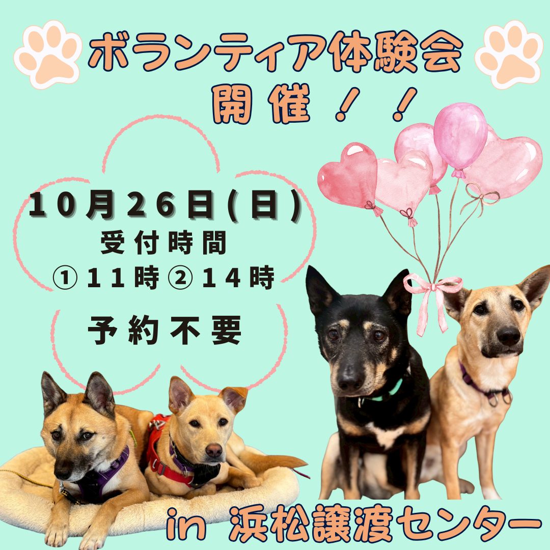 【ピースワンコのイベント】10/26(日)「ボランティア体験会」初★開催(浜松譲渡センター)