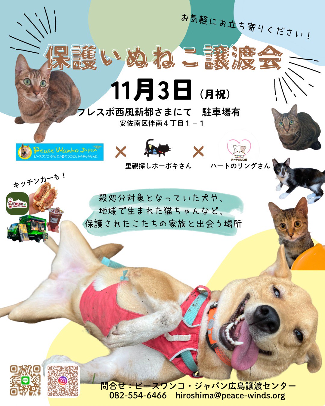 【ピースワンコの譲渡会】11/3(祝月)「保護いぬねこ譲渡会」開催(広島/安佐南区)