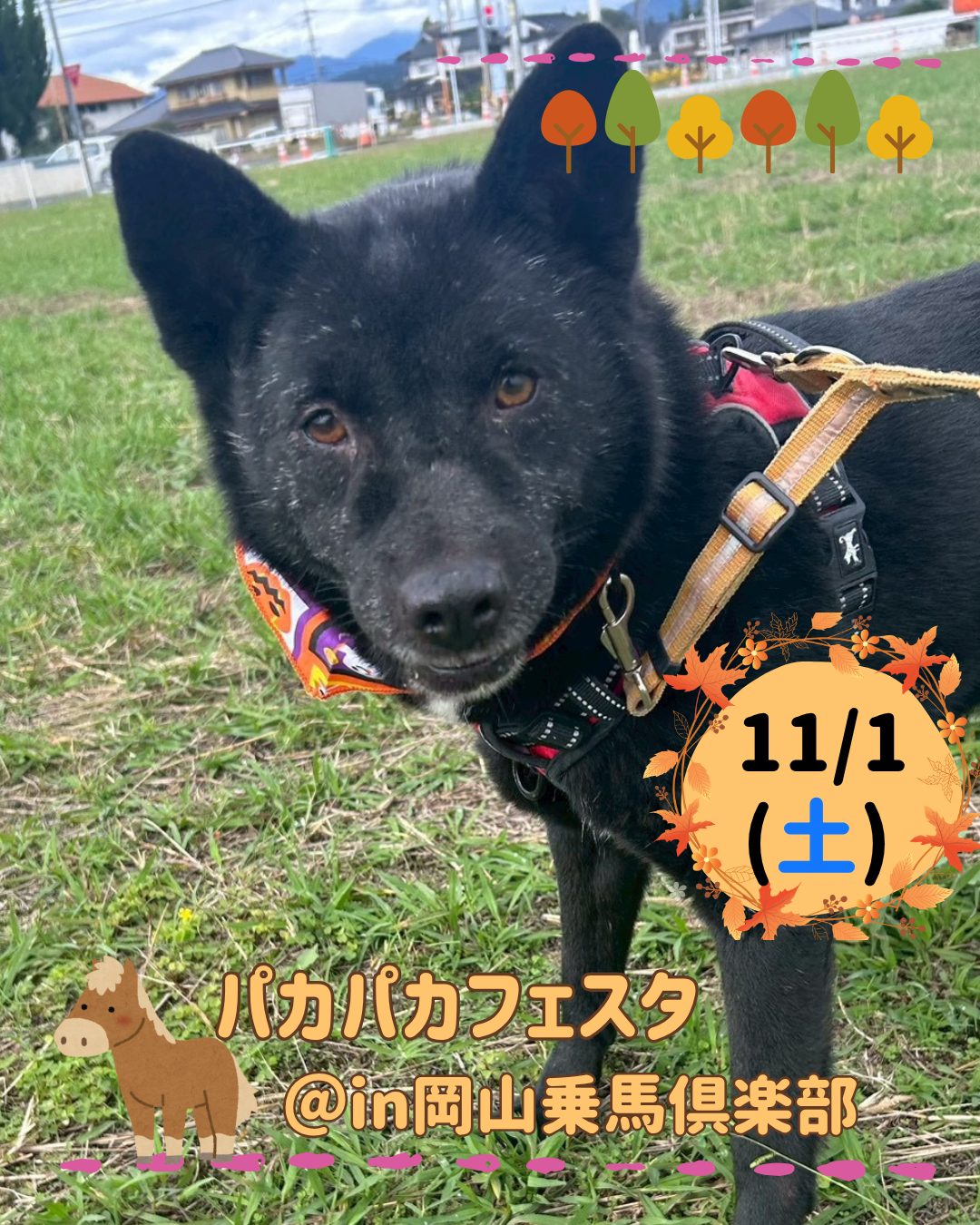 11/1(土)に、吉備中央町にある岡山乗馬倶楽部様にて【保護犬の譲渡会】を開催します!
