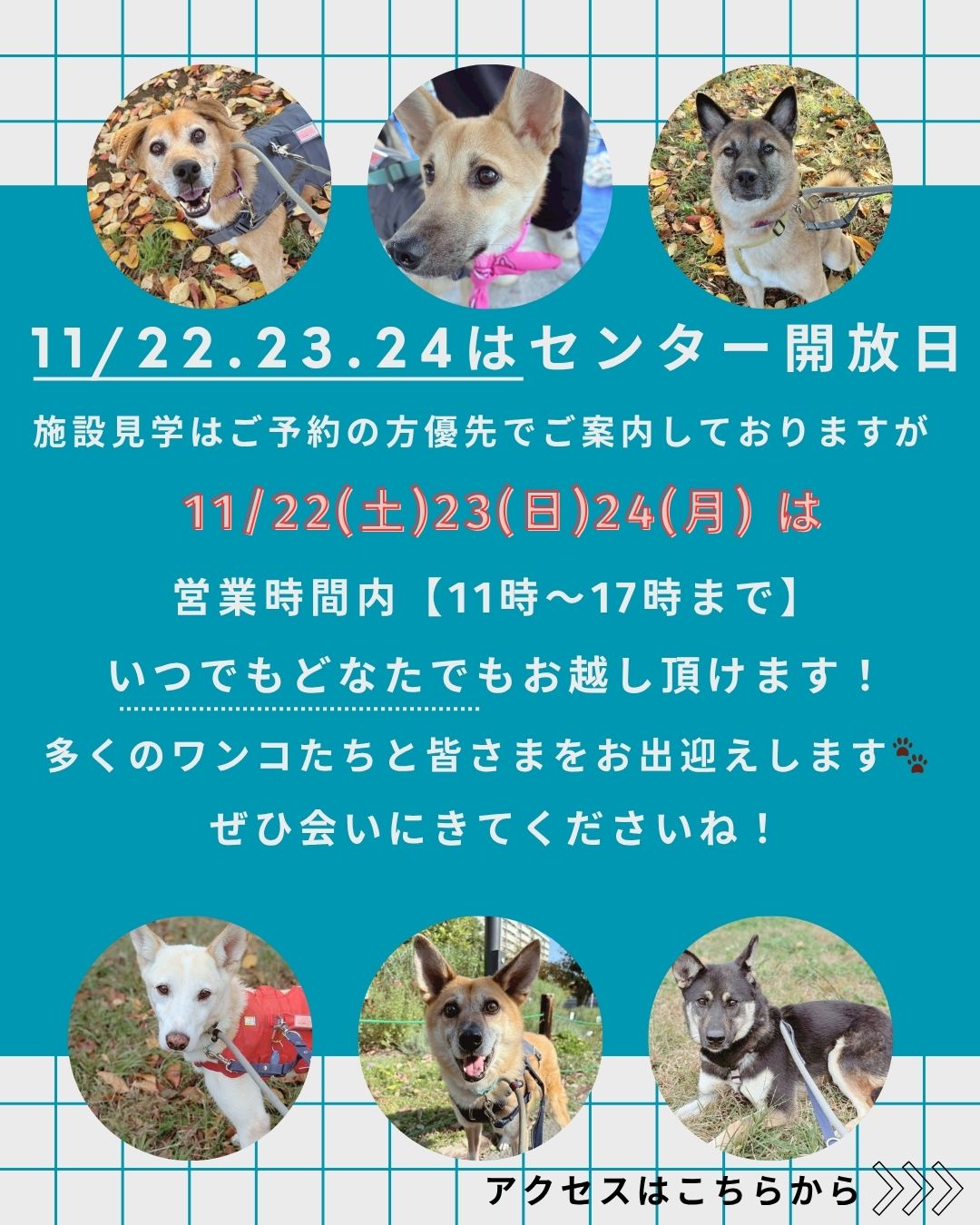 11/22(土)・11/23(日)・11/24(祝月)はセンター開放日とさせて頂きます!