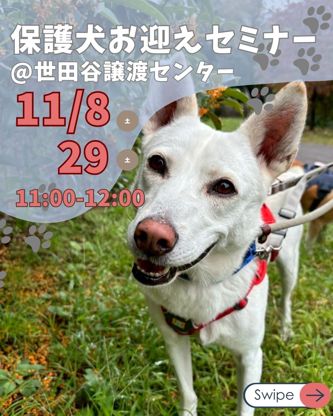 将来的に保護犬をお迎えしたいと思ってくださっている方、保護犬について知りたい方、もちろんお子様とご一緒の参加も大歓迎です!