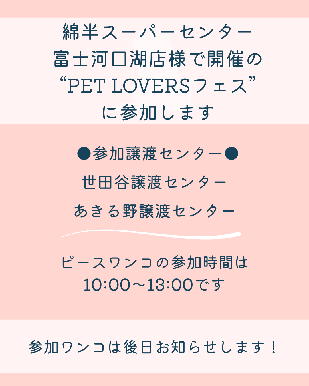 11月9日(日)、山梨県の綿半スーパーセンター富士河口湖店さんにて開催される「PET LOVERSフェス」に