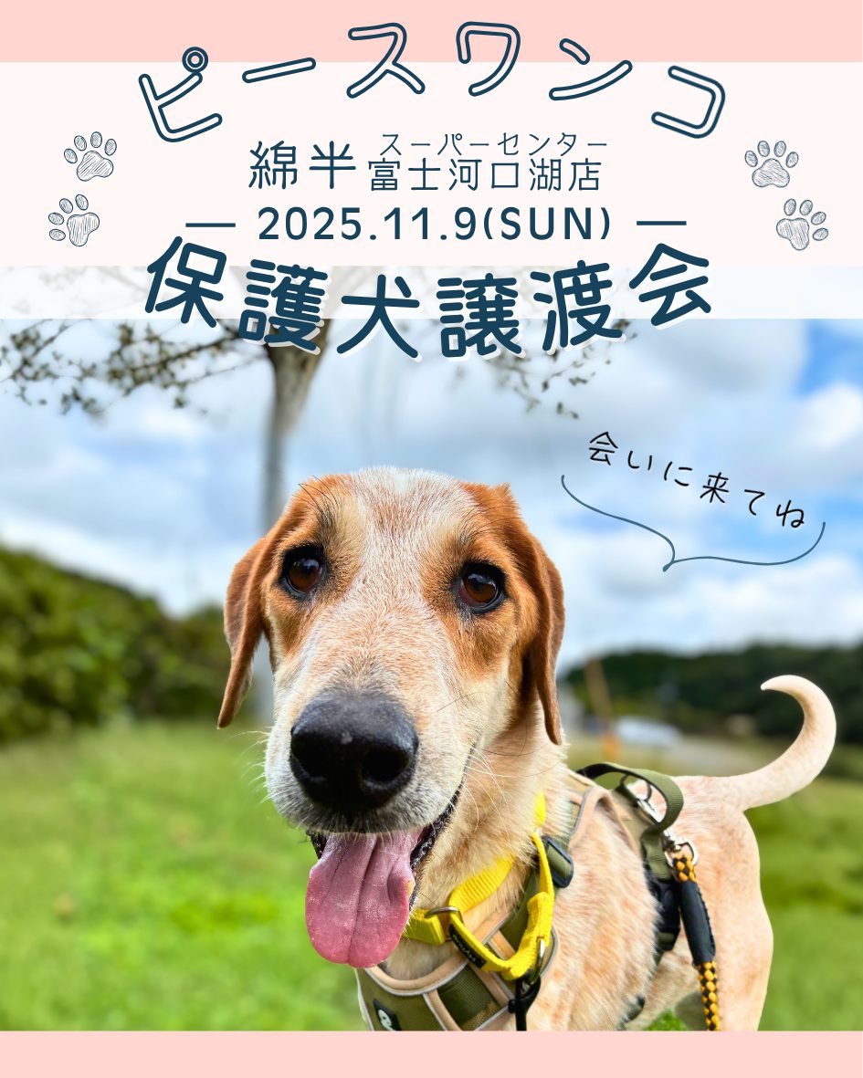 【ピースワンコの譲渡会】11/9(日)「保護犬譲渡会」を開催(山梨/富士河口湖町)