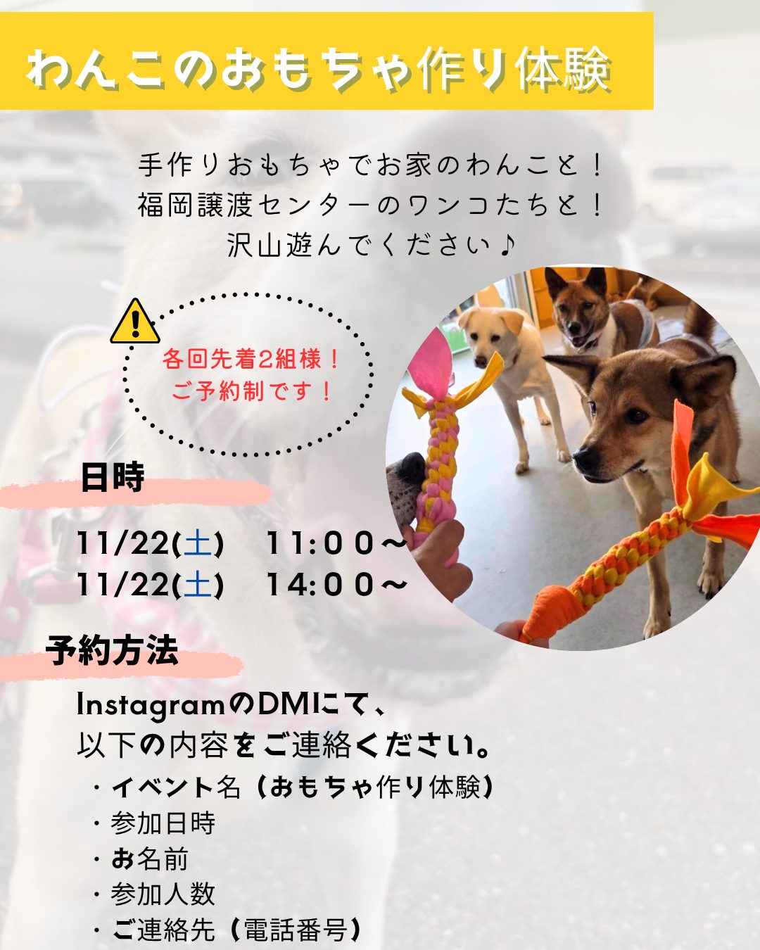 11/7(金)、14(金)、22(土)に福岡譲渡センターにて「ご予約制イベント」を開催します!