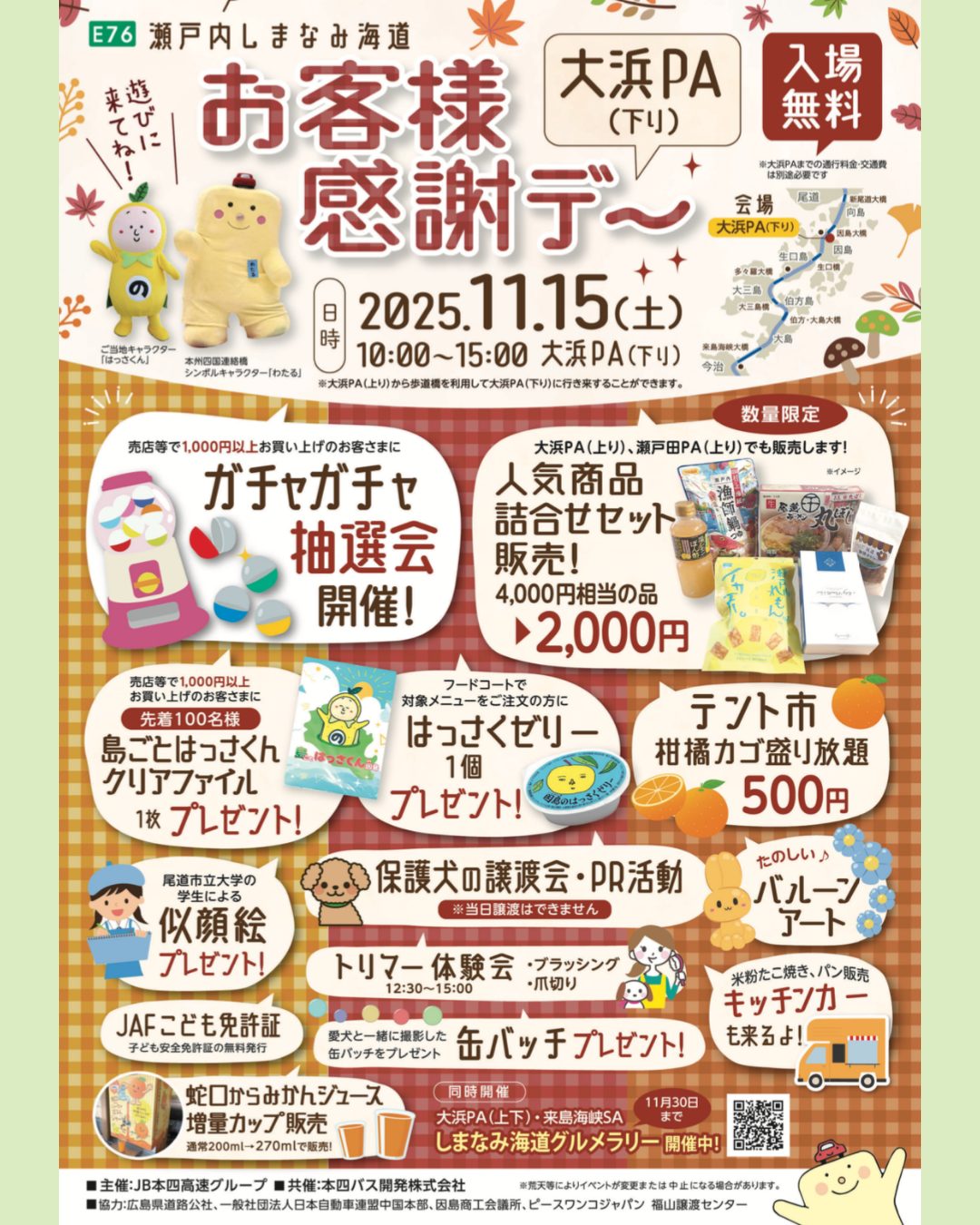 瀬戸内しまなみ海道 大浜PA(下り線)にて開催!