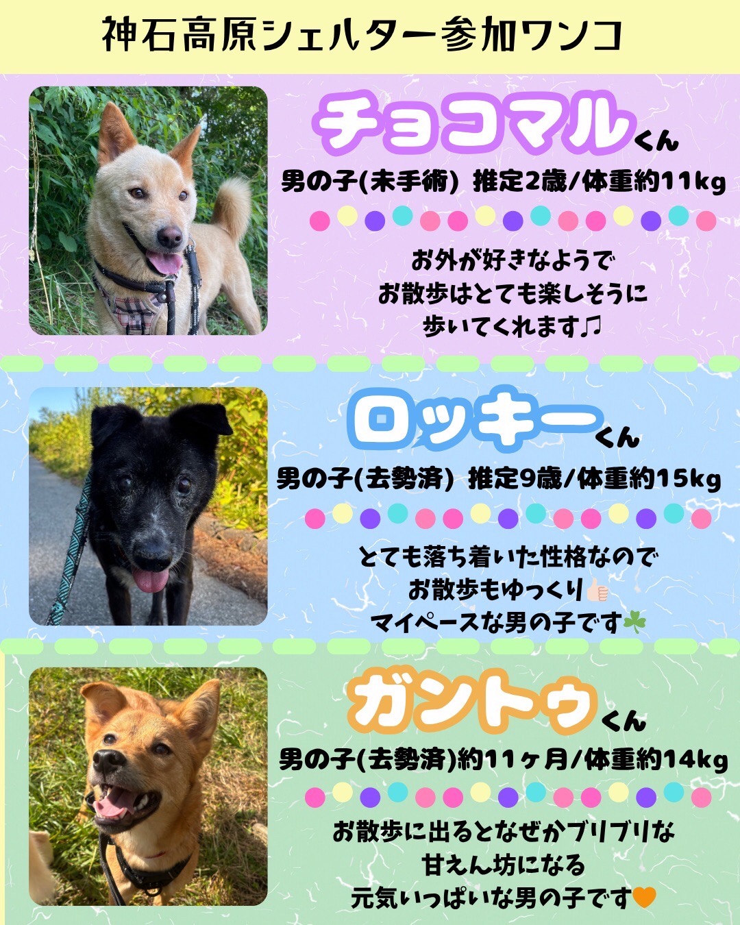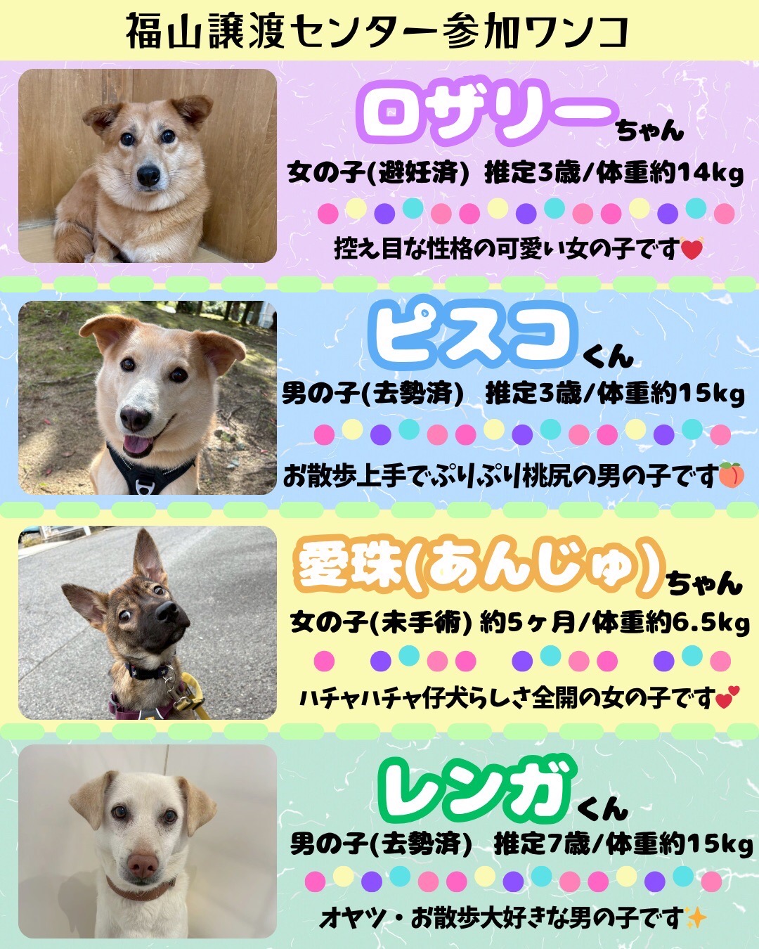 - ◆参加ワンコについて ピースワンコ・ジャパン福山譲渡センター TEL: 084-928-1785 MAIL: fukuyama@peace-winds.org