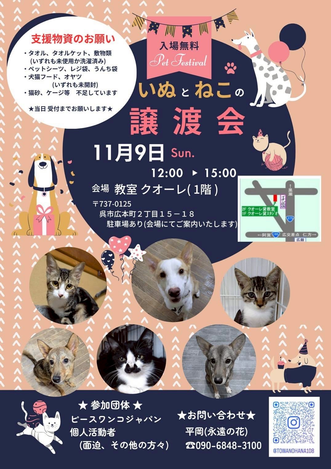 呉市の「教室クオーレ」様にて開催される 永遠の花 様主催の譲渡会に、